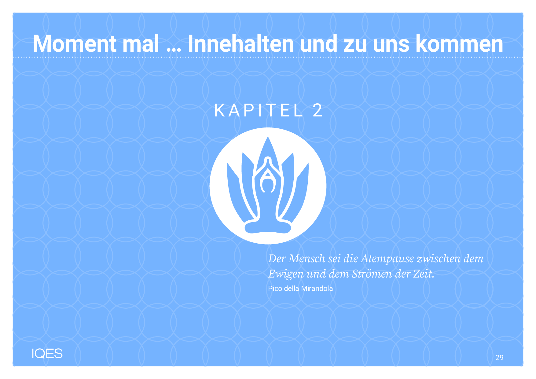 Wenn wir achtsam innehalten, schenken wir Aufmerksamkeit, Zeit und Zuwendung dem, was jetzt in uns und um uns da ist. Wir ermöglichen dann genau das, was uns im Alltag oft fehlt: sinnvolle Präsenz im gegenwärtigen Augenblick mit einer offenen, wertschätzenden und gelassenen Haltung.