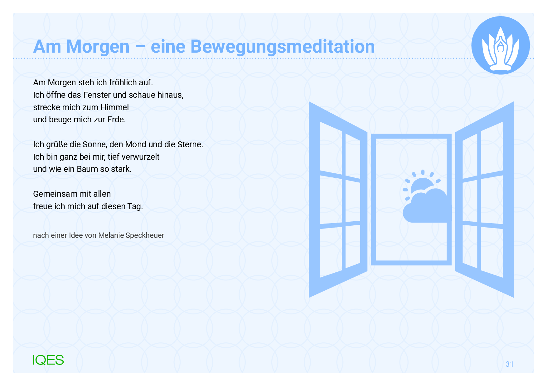 Am Morgen – eine Bewegungsmeditation | HALT | Die Schneekugel | Der Klang der Ruhe | Lauschen | Der Regenstab