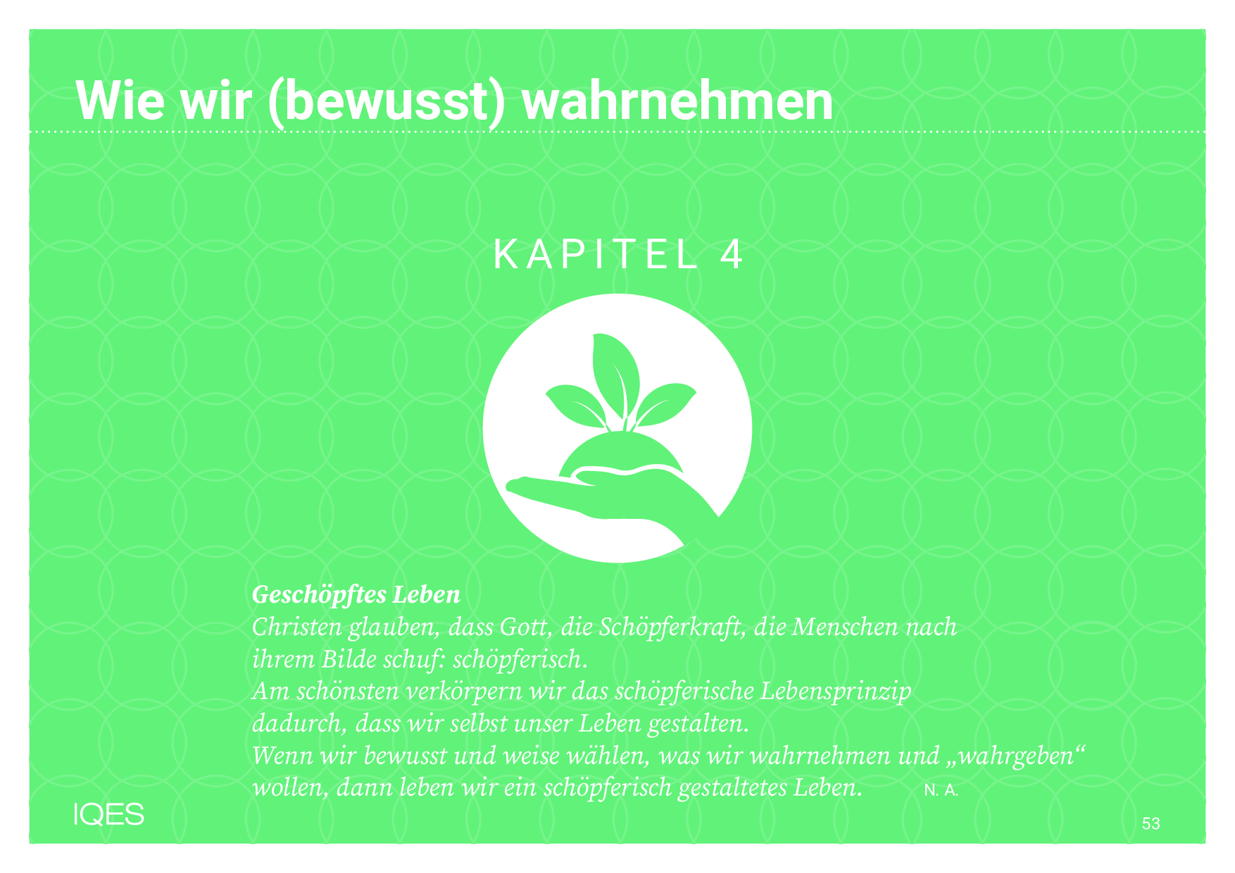 Wenn wir achtsam dafür sind, können wir dabei mitbestimmen, worauf wir achten wollen. Durch diese bewusste Wahl gestalten wir unsere Welt. In diesem Sinne sind wir durch achtsames Wahrnehmen »wahrgebend« schöpferisch. Damit verwirklichen wir Joseph Beuys‘ Überzeugung, dass jeder Mensch ein Künstler ist. Und wir vervollständigen Immanuel Kants aufklärerische Maxime, wenn wir uns nicht nur mutig unseres eigenen Verstandes bedienen, sondern auch kreativ und gern freudvoll unsere Gestaltungskräfte entfalten.