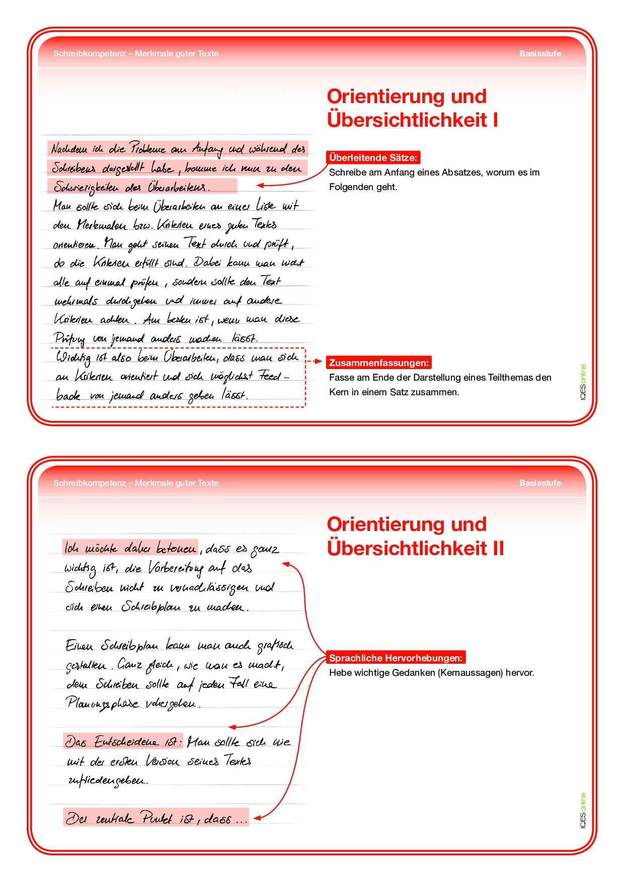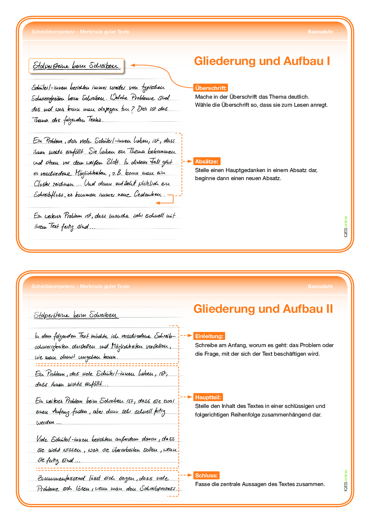 Diese Schülerkarten dienen der Förderung der Schreibkompetenz in der Aufbaustufe. Sie sind zu den Themen Gliederung und Aufbau, Orientierung und Übersichtlichkeit, Verständlichkeit, Adressatenorientierung sowie Sprache verfasst.