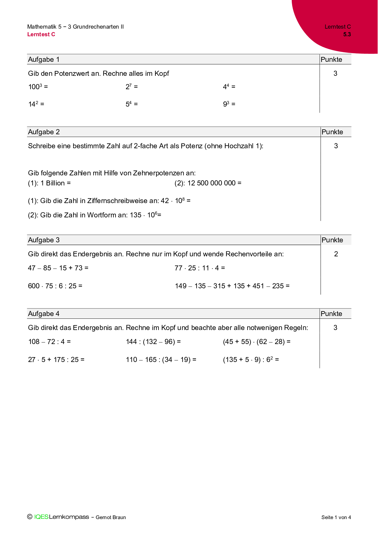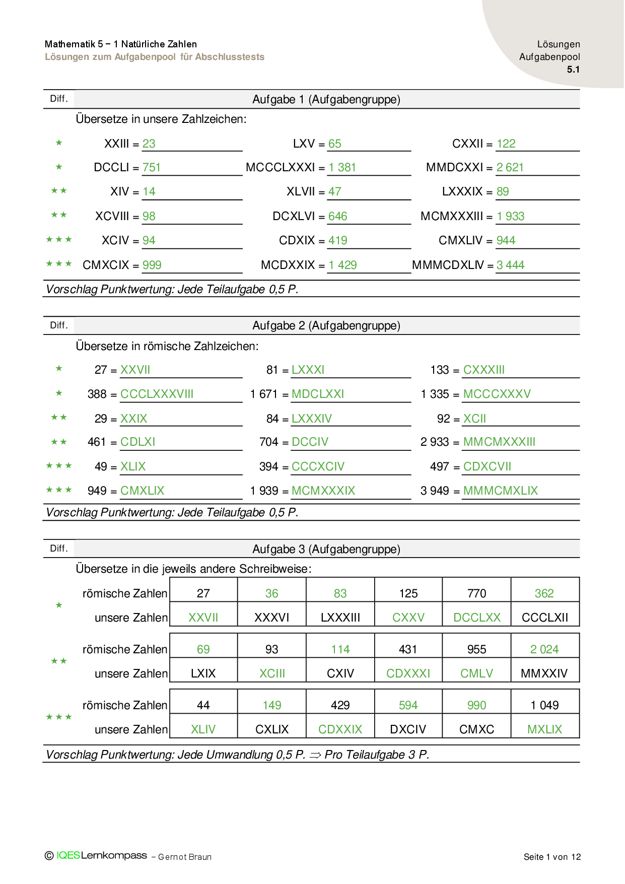 5.1 Natürliche Zahlen – Lösungen zum Lerntest C