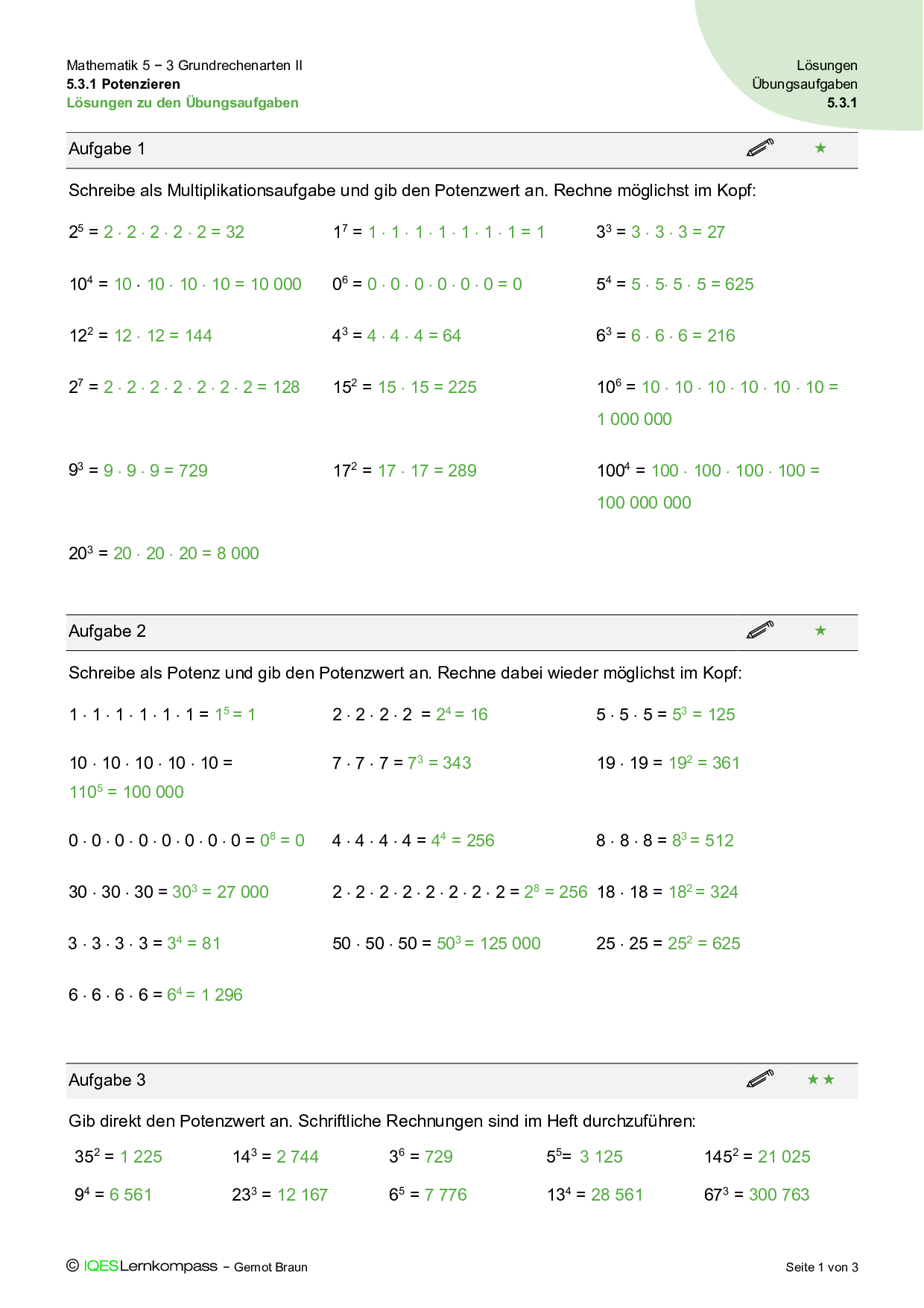 5.3.1 Potenzieren – Übungsaufgaben mit Lösungen