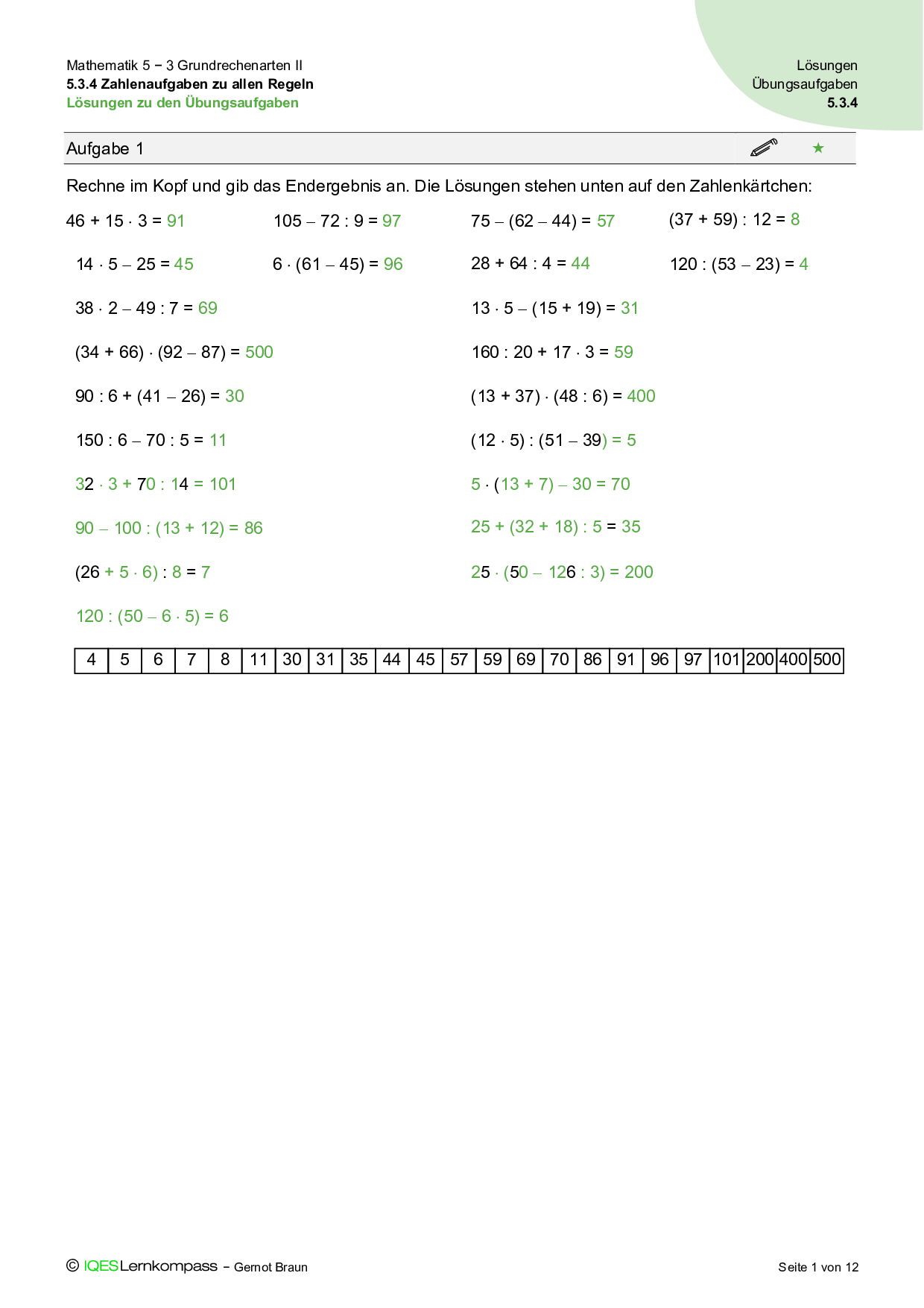 5.3.4 Zahlenaufgaben zu allen Regeln – Übungsaufgaben mit Lösungen