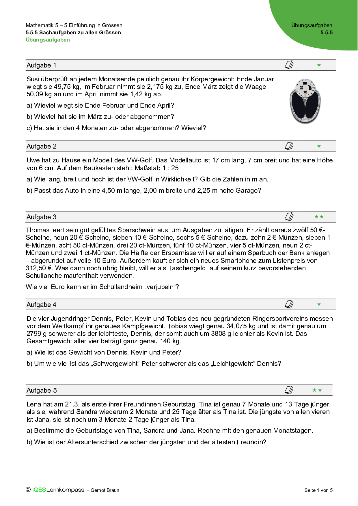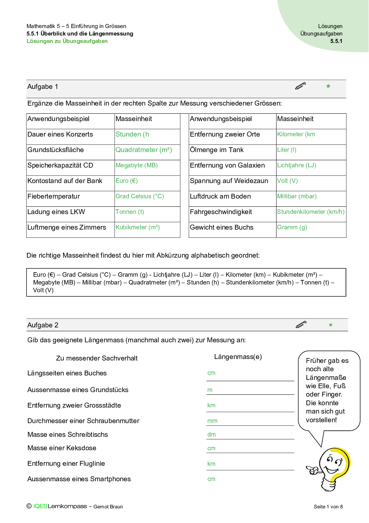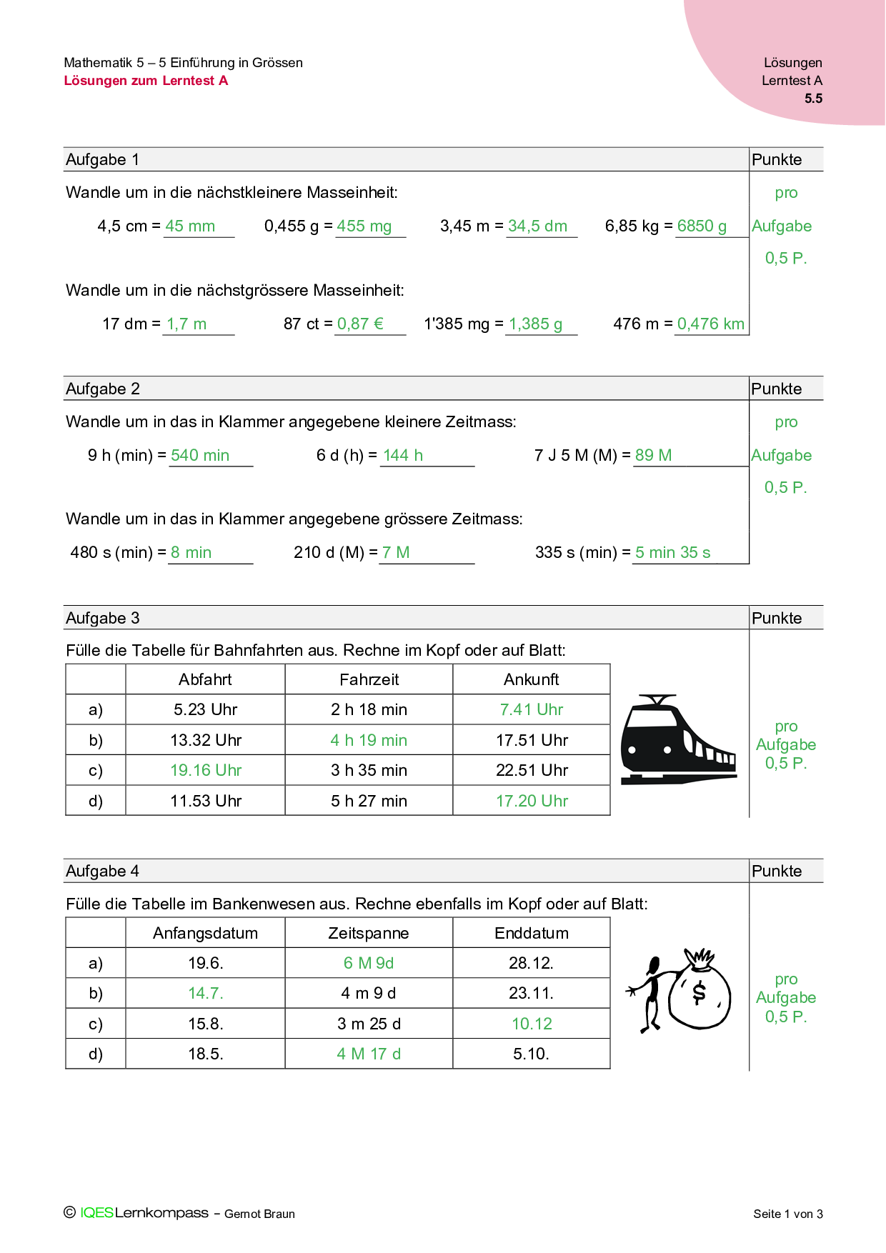 5.5 Einführung in Grössen – Aufgabenpool für Abschlusstests