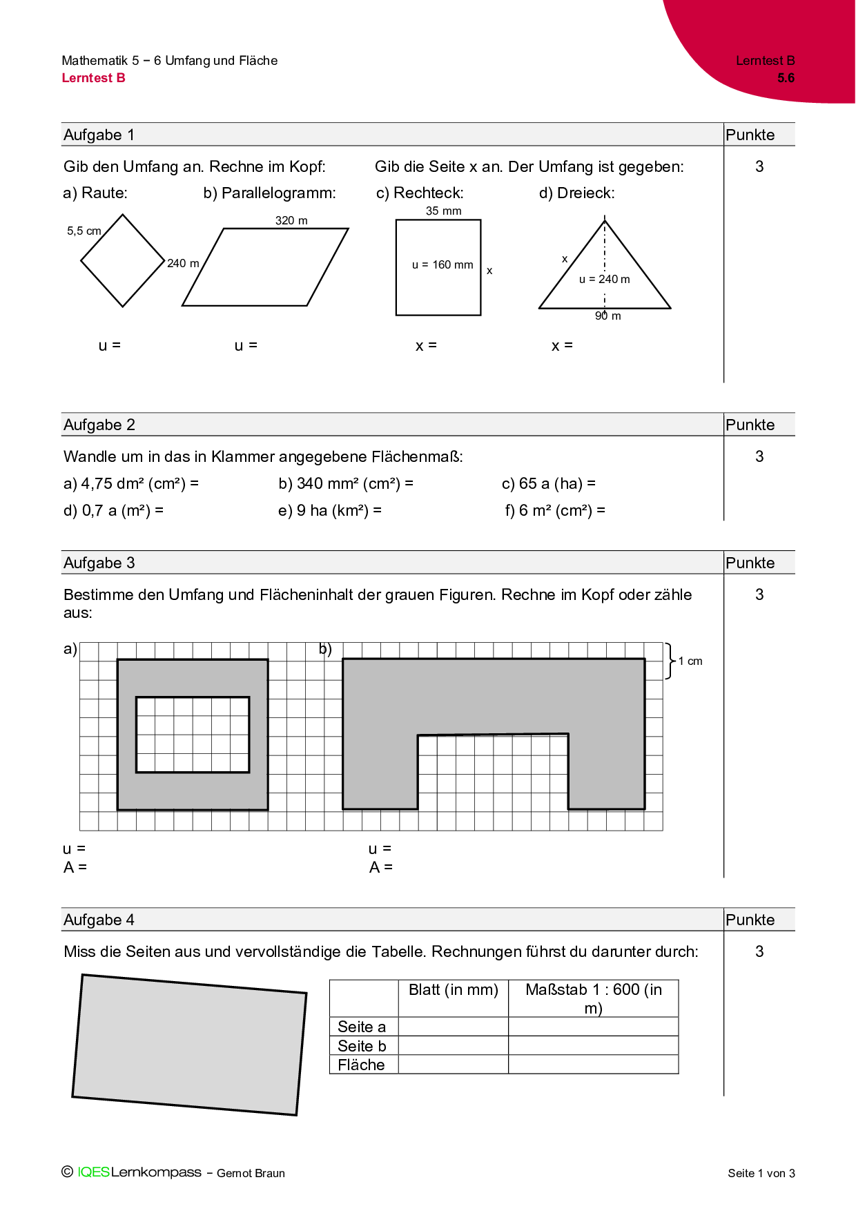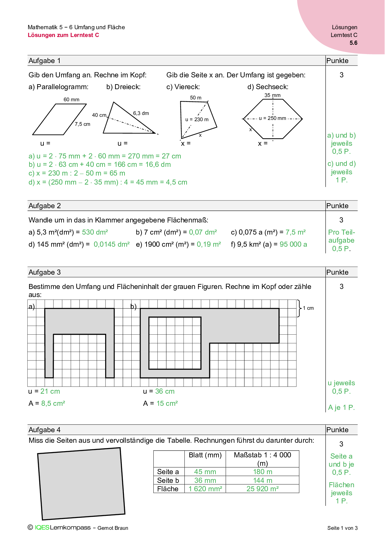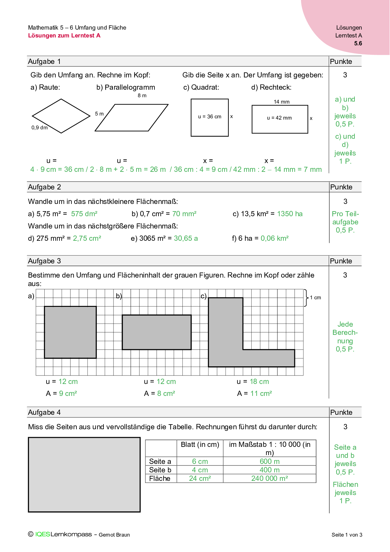 5.6 Umfang und Fläche – Lösungen zum Lerntest A