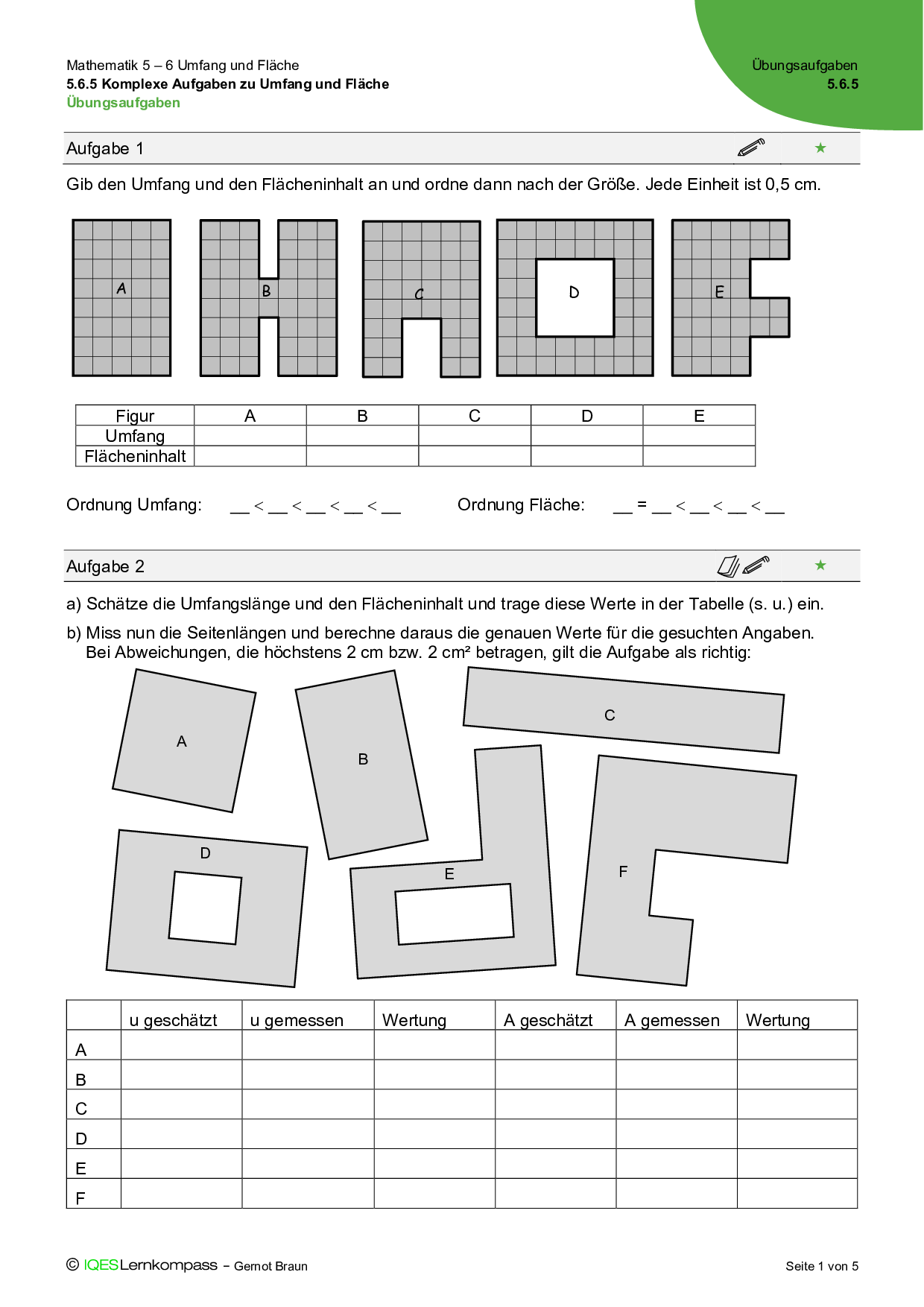 5.6.5 Komplexe Aufgaben zu Umfang und Fläche – Übungsaufgaben
