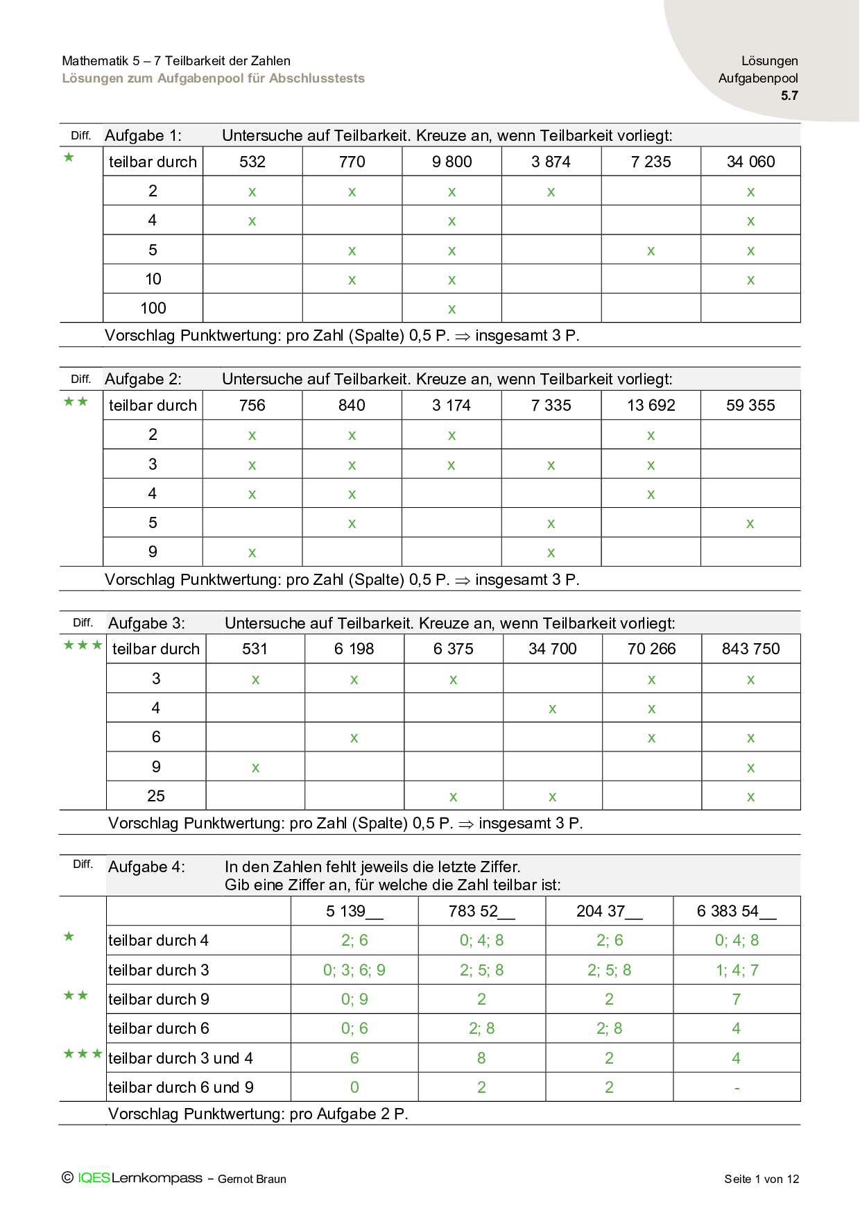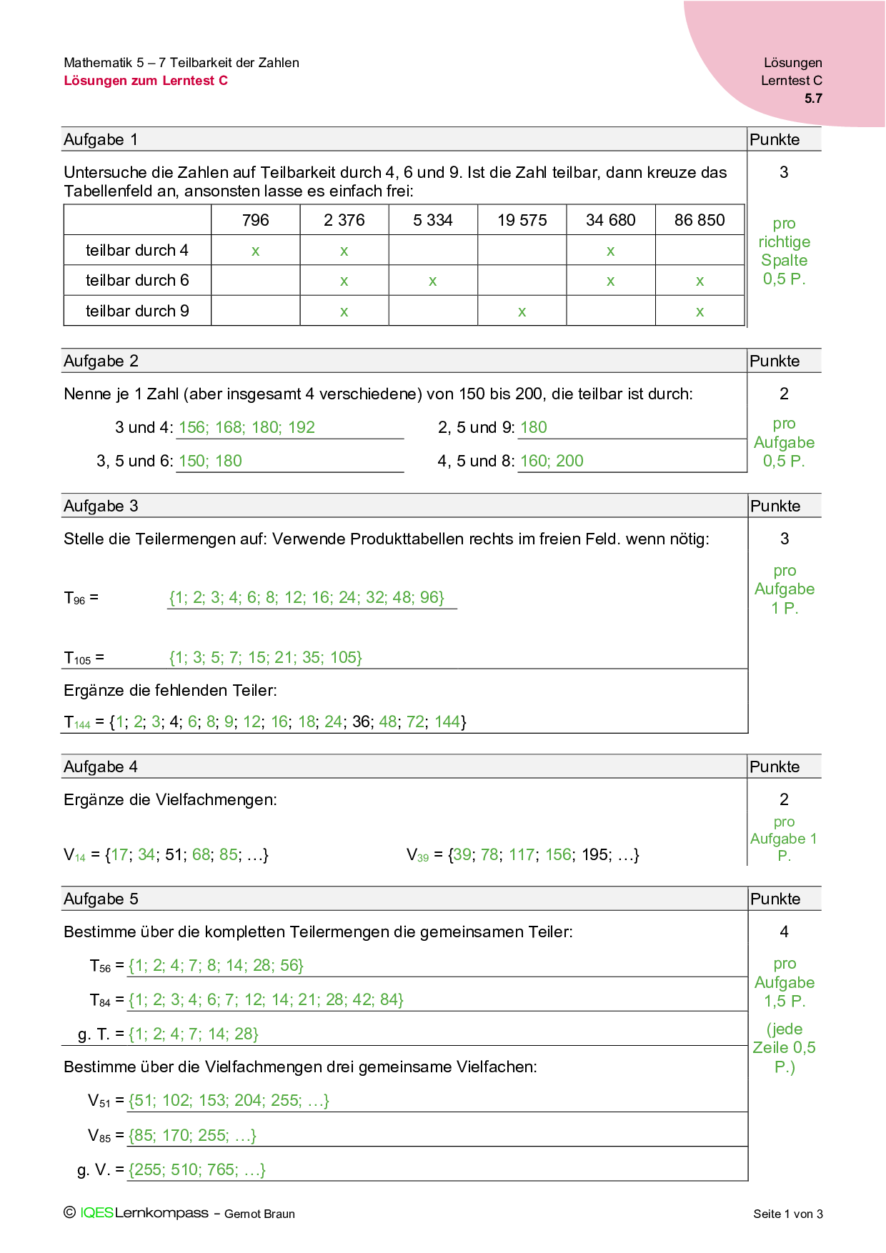 5.7 Teilbarkeit – Lösungen zum Lerntest C
