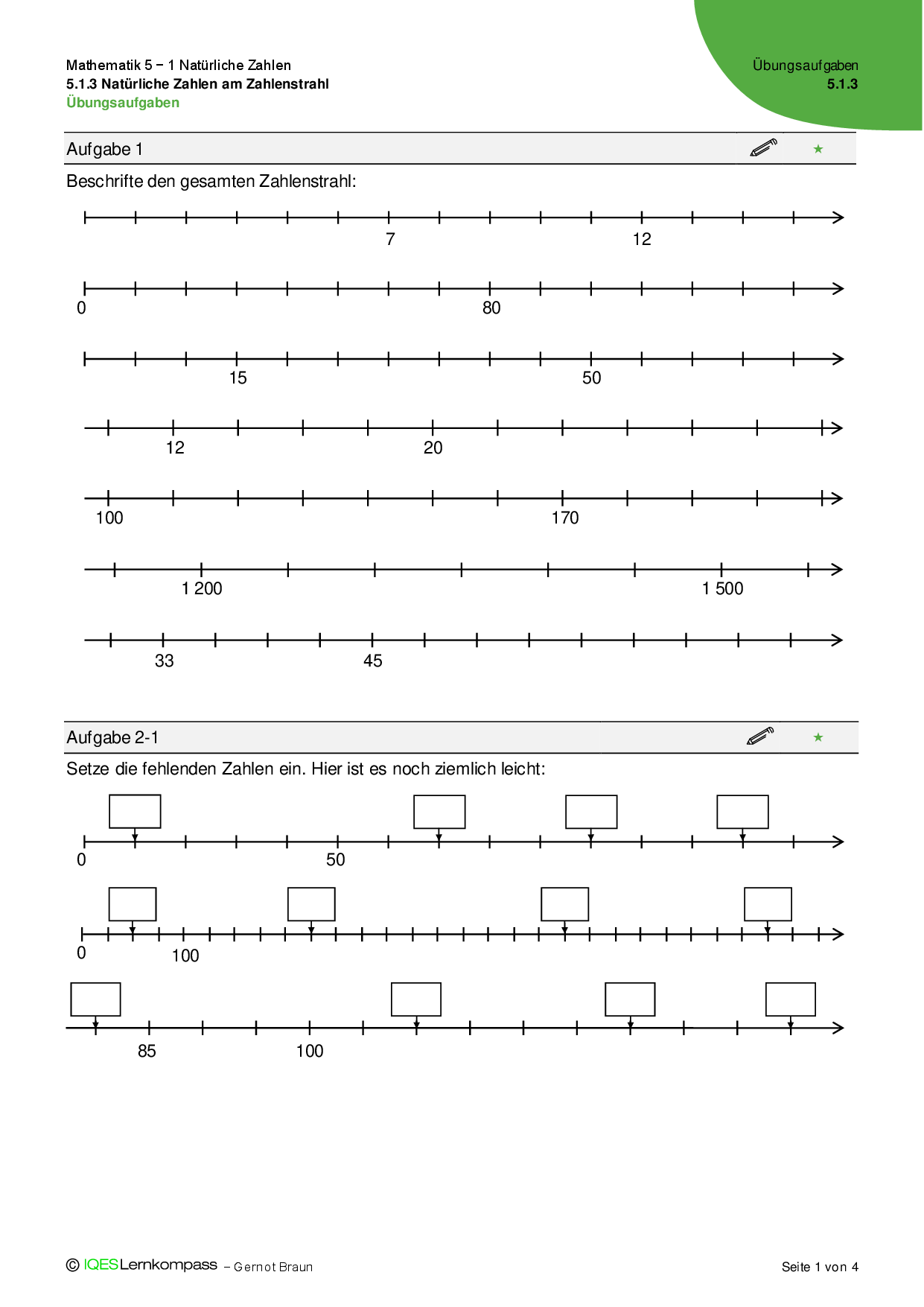 5.1.3 Natürliche Zahlen am Zahlenstrahl – Übungsaufgaben