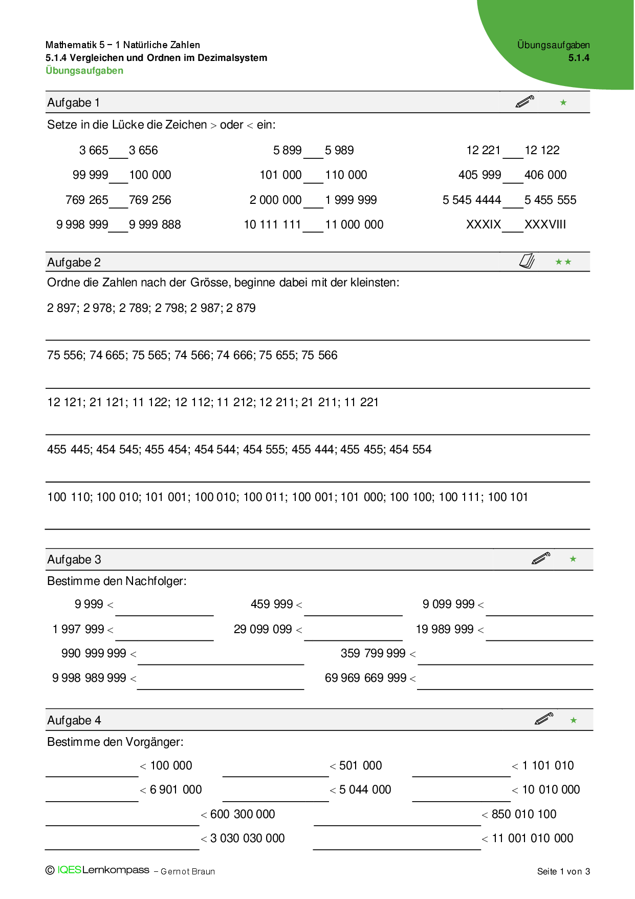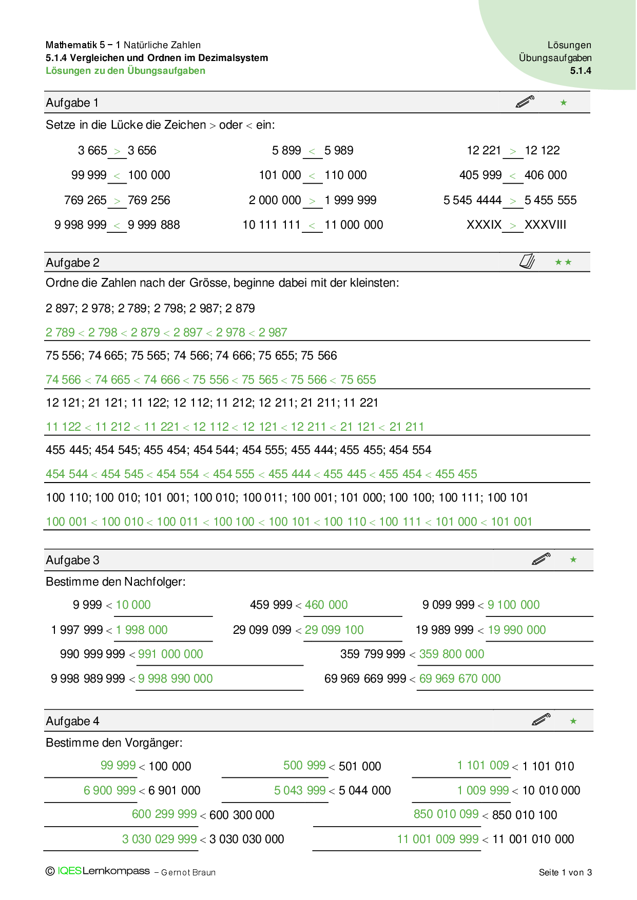 5.1.6 Darstellung natürlicher Zahlen – Übungsaufgaben mit Lösungen