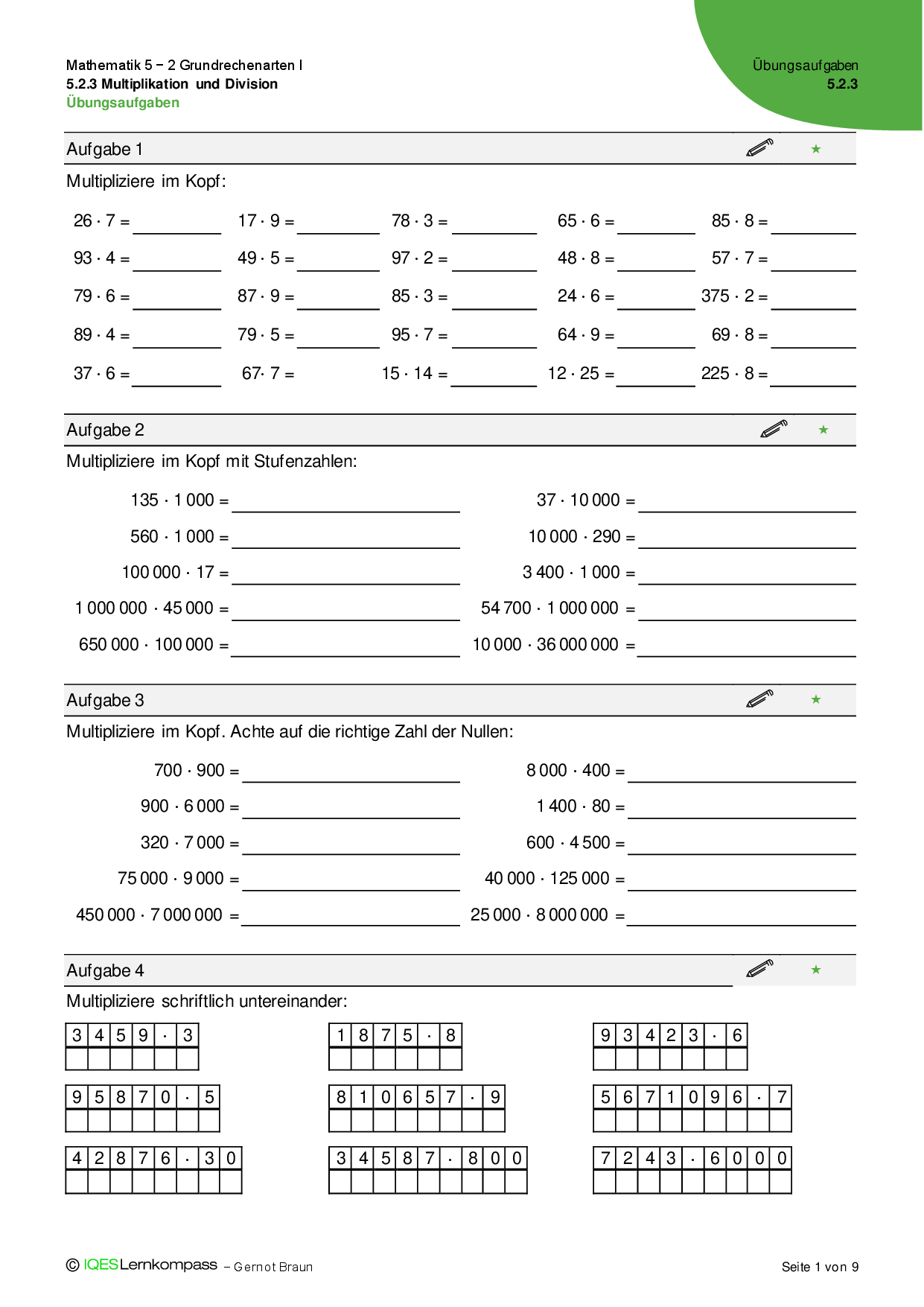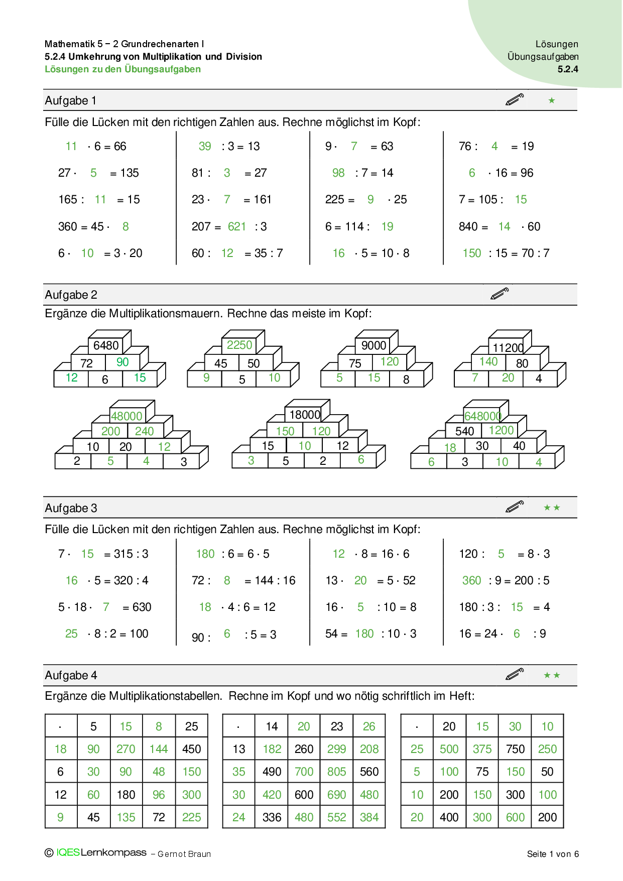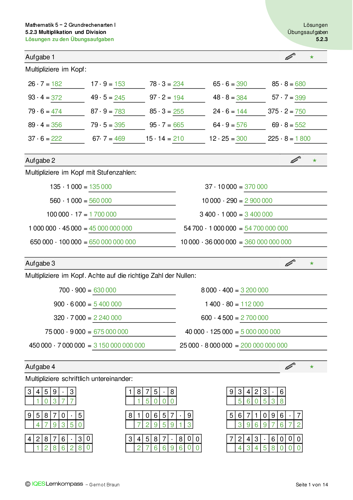 5.2.3 Multiplikation und Division – Übungsaufgaben mit Lösungen