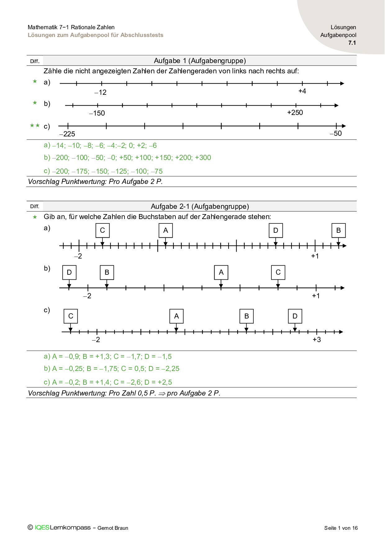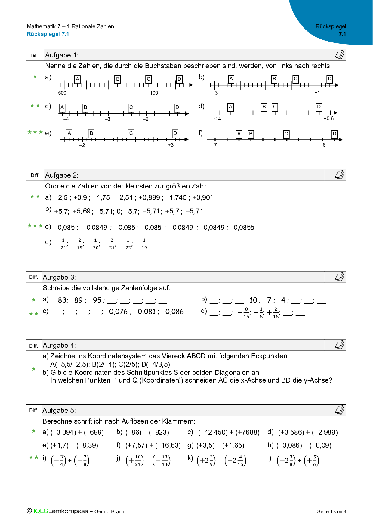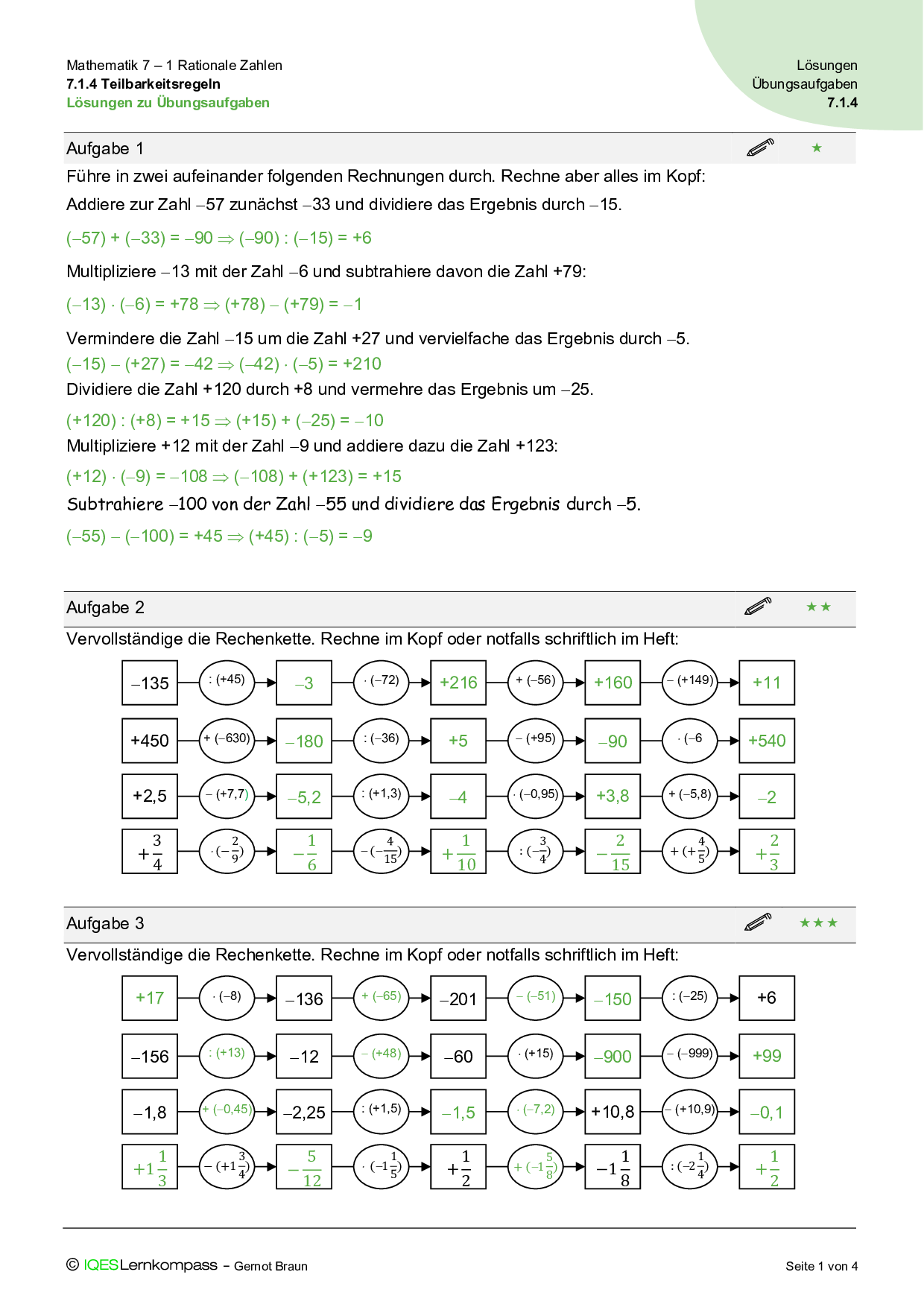 7.1.1 Zahlbereich rationale Zahlen – Übungsaufgaben mit Lösungen