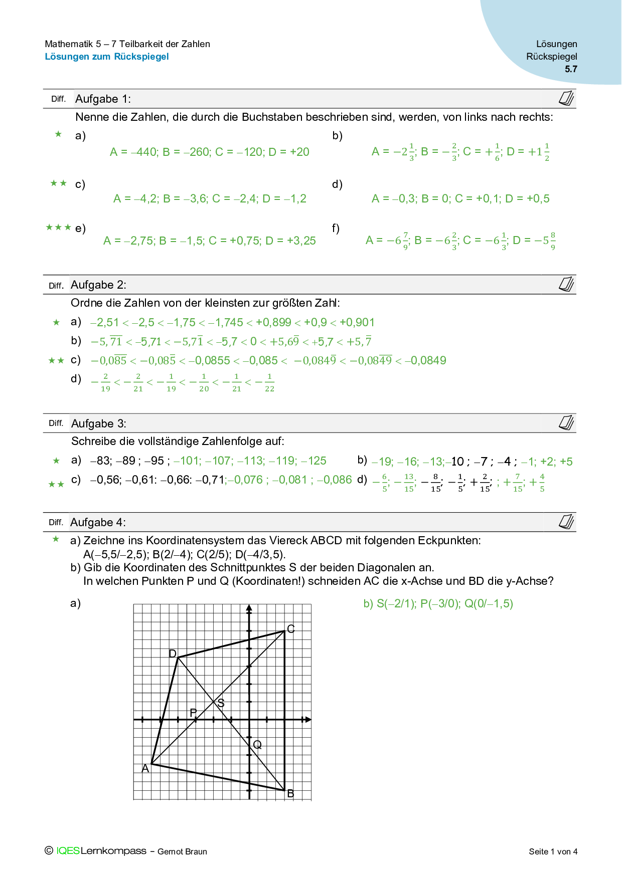 7.1 Rationale Zahlen – Lösungen zum Rückspiegel