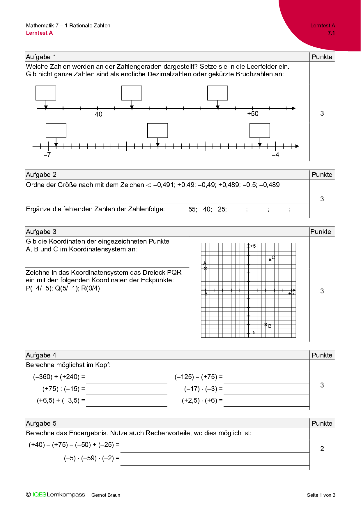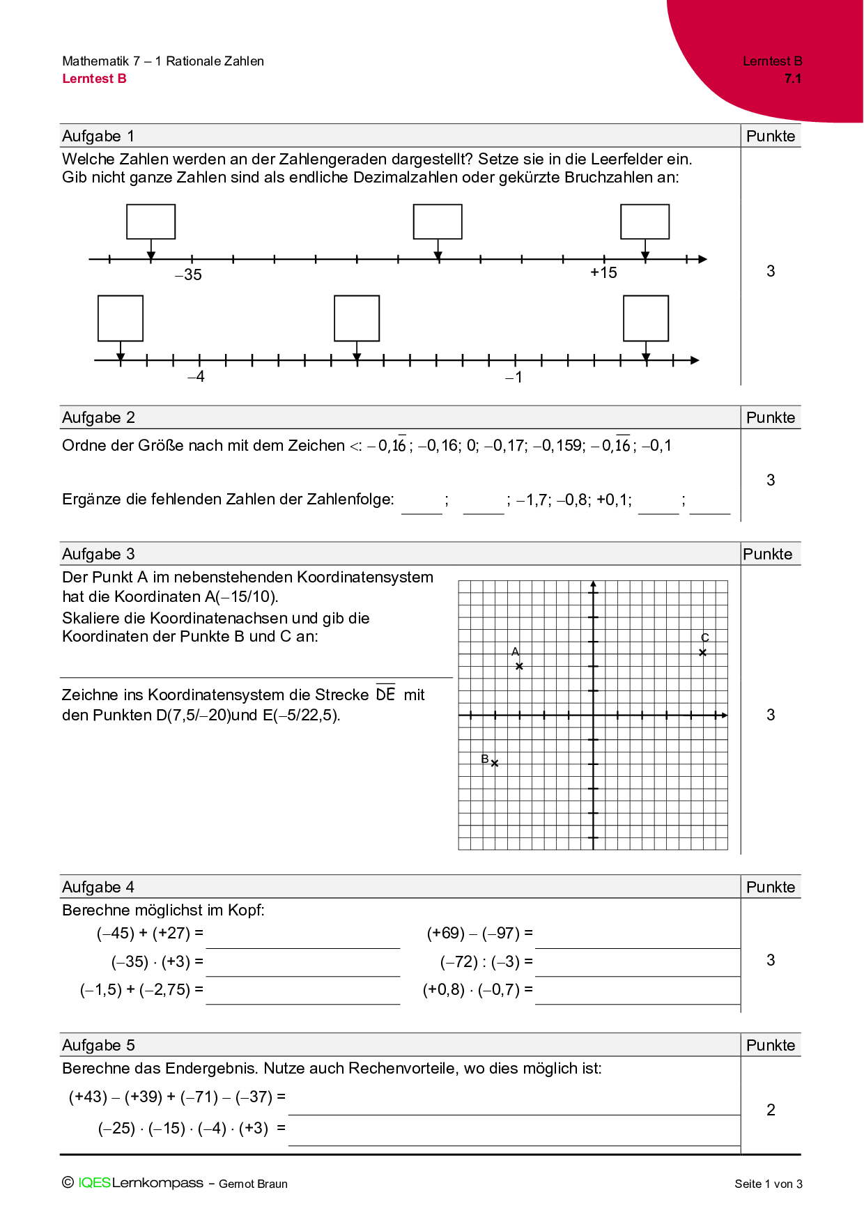 7.1.1 Zahlbereich rationale Zahlen – Übungsaufgaben