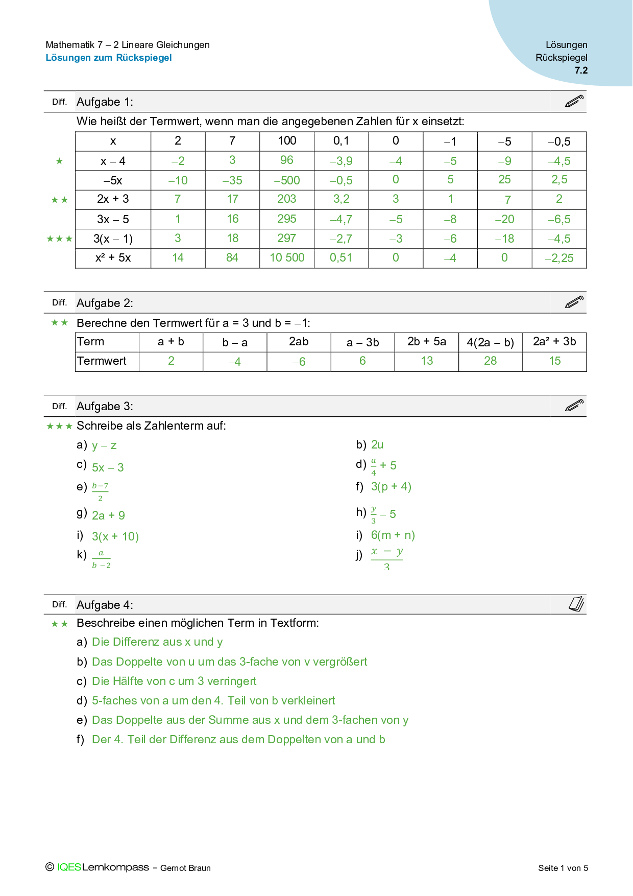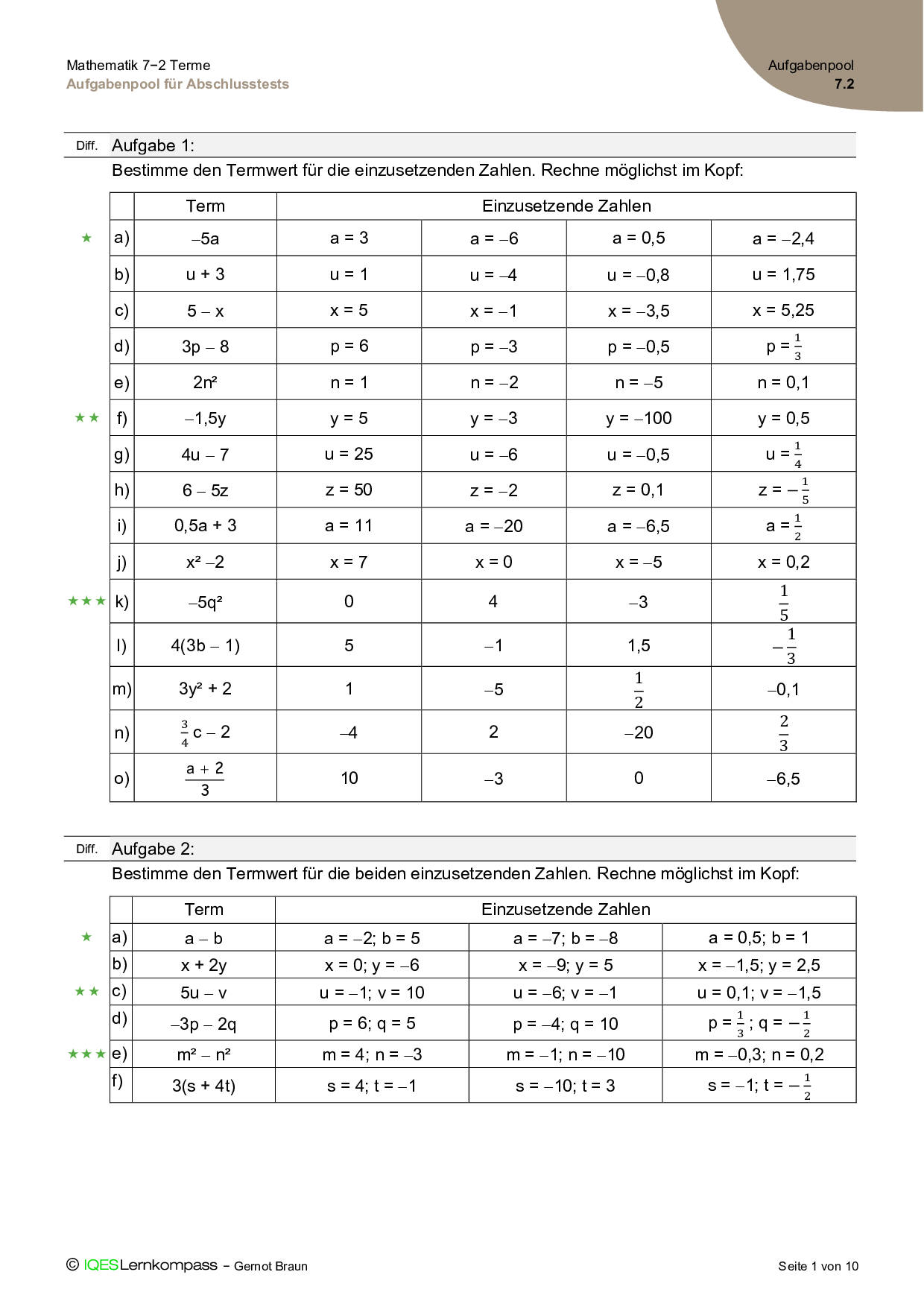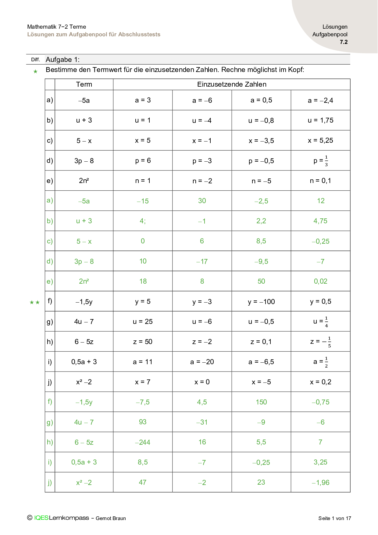 7.2 Terme – Lösungen zum Aufgabenpool für Abschlusstests