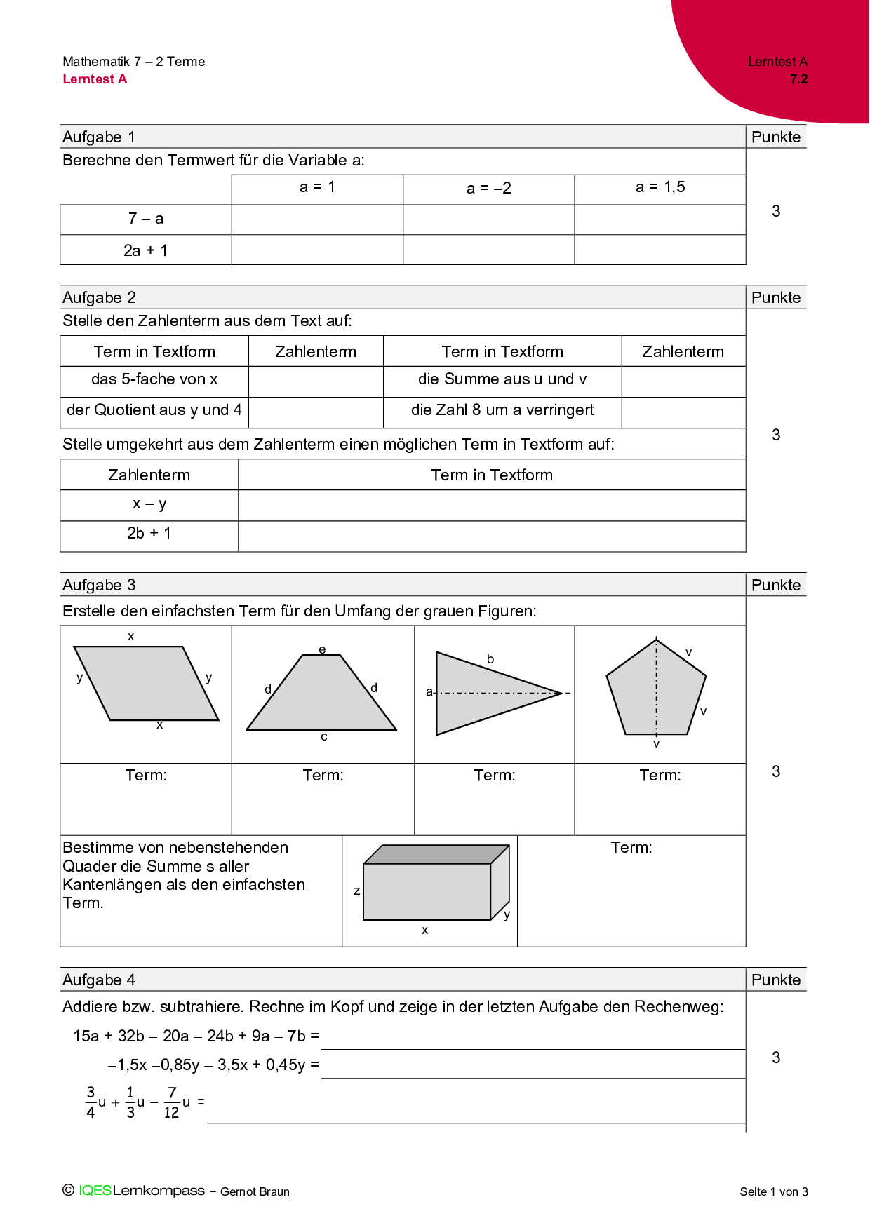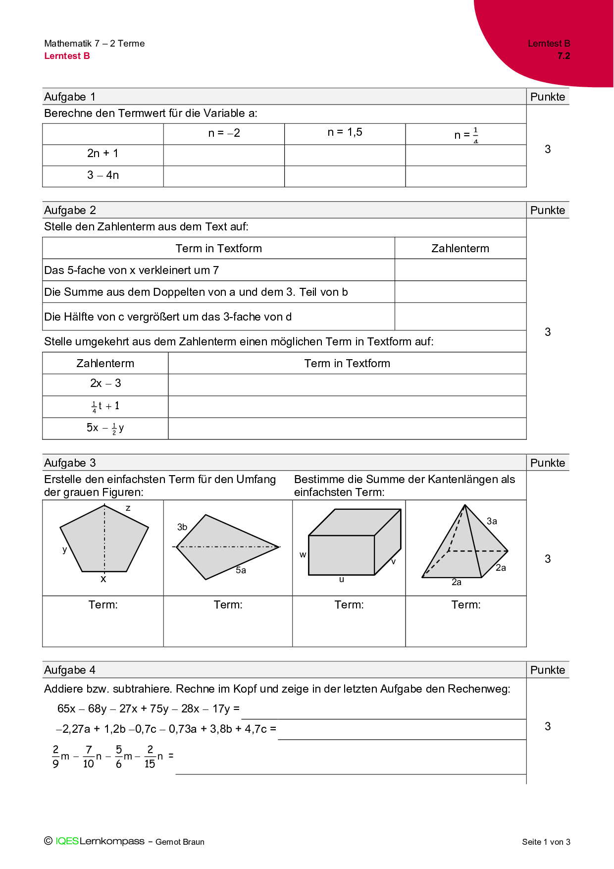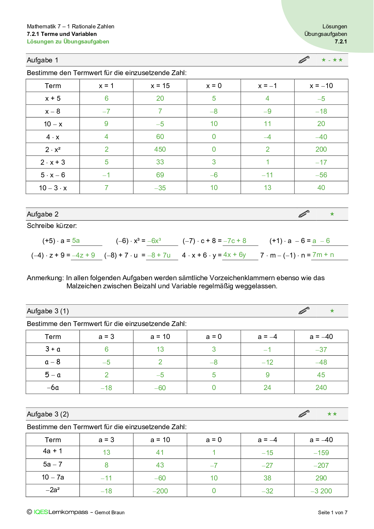 7.2 Terme – Lösungen zum Aufgabenpool für Abschlusstests