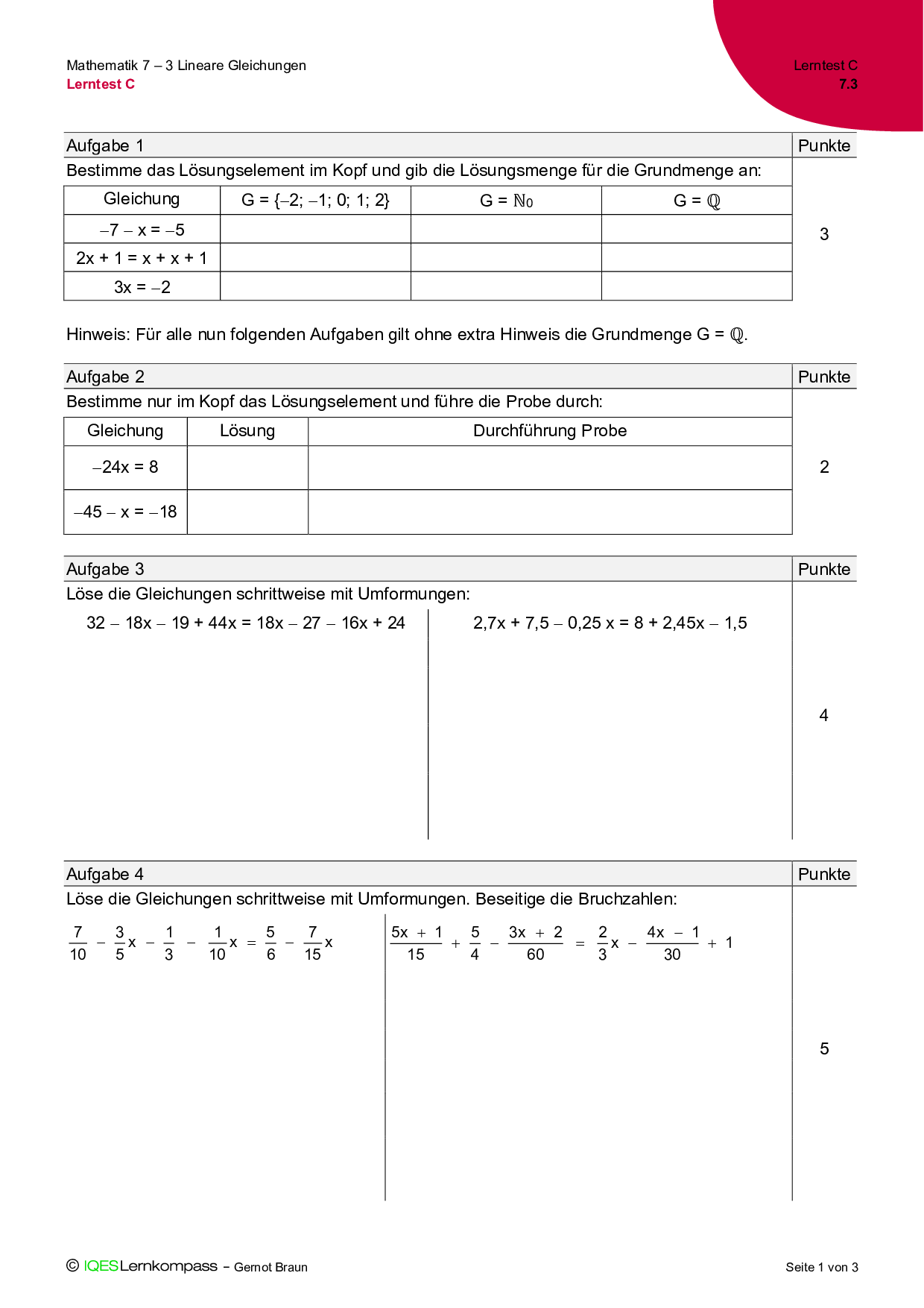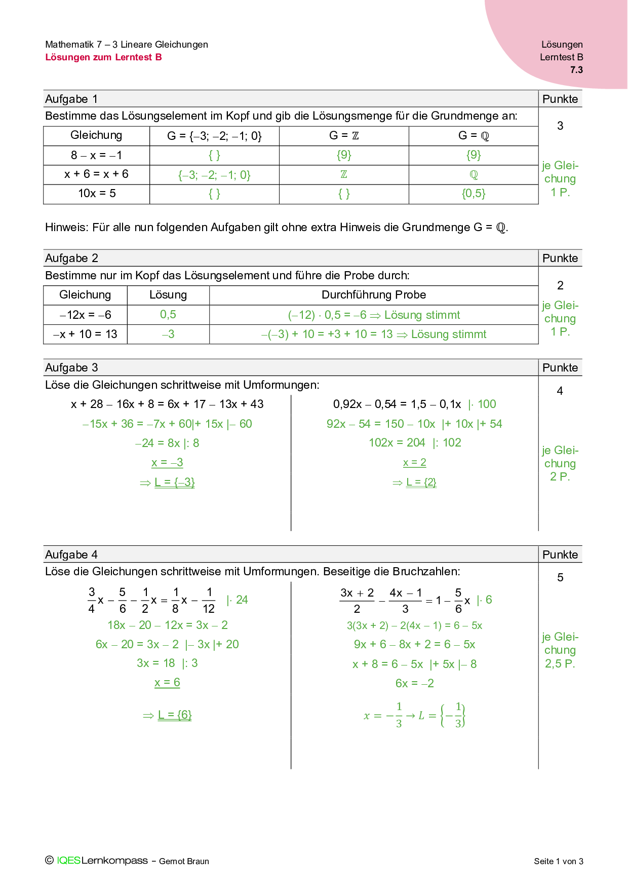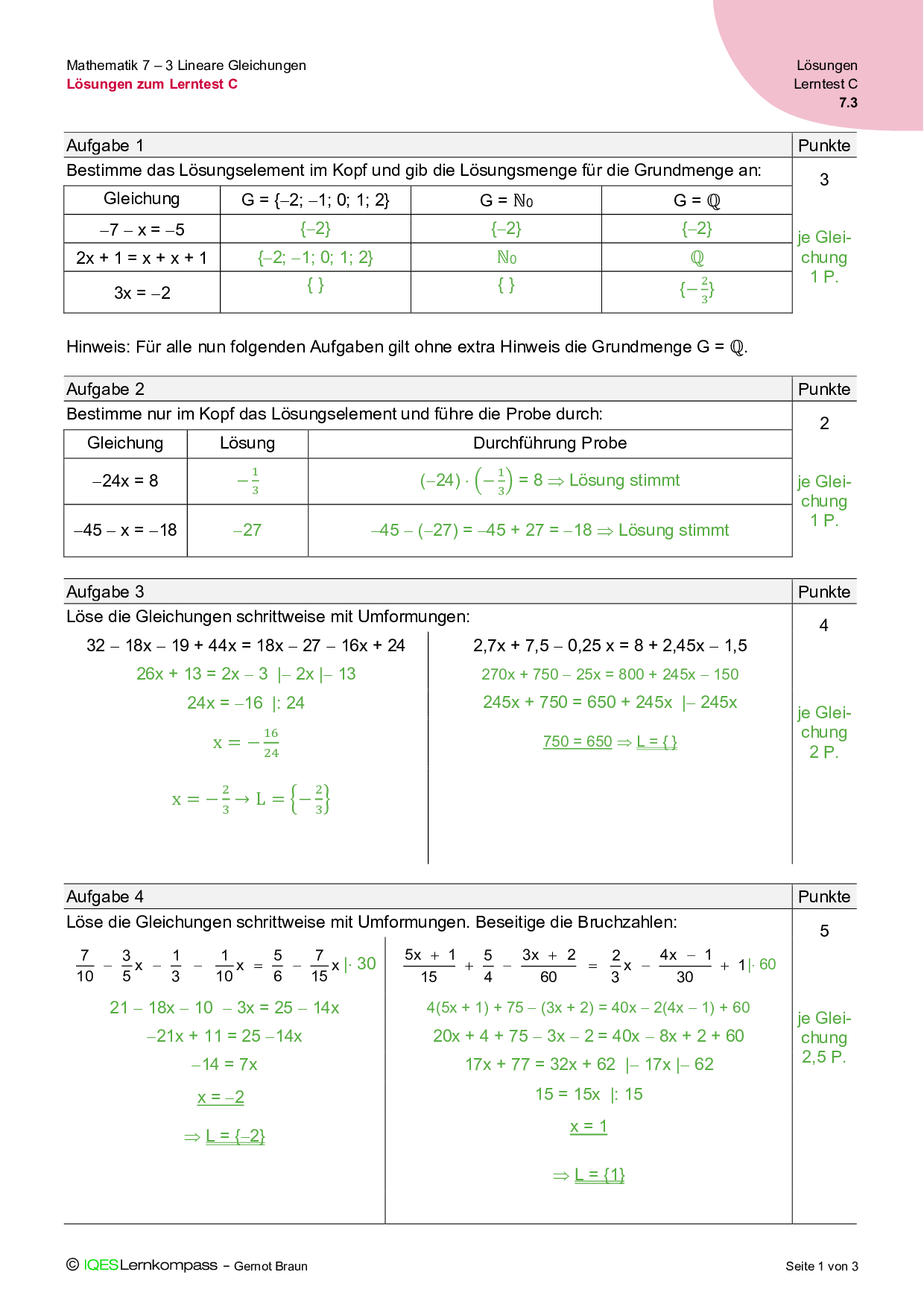 7.3 Lineare Gleichungen – Lösungen zum Lerntest C