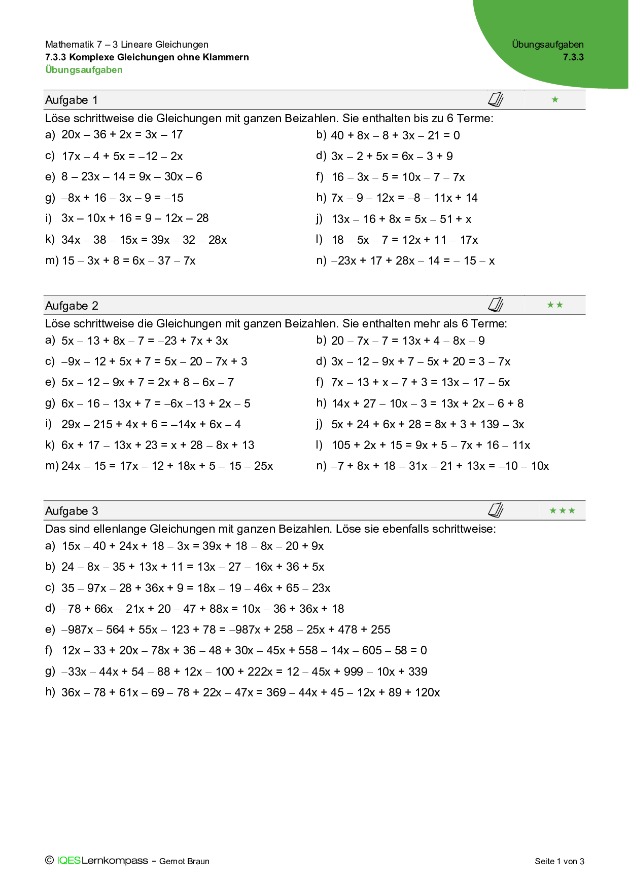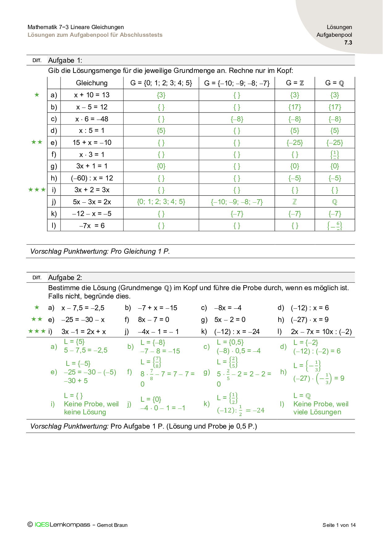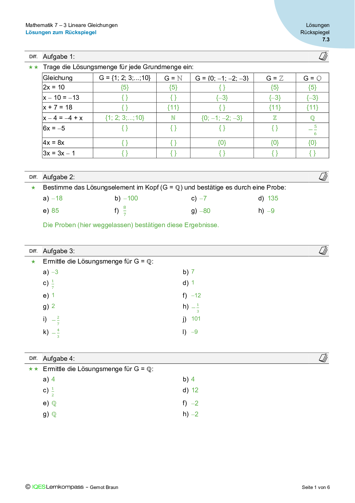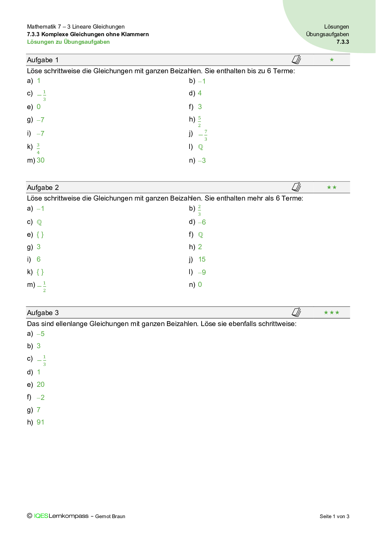 7.3 Lineare Gleichungen – Lösungen zum Lerntest C