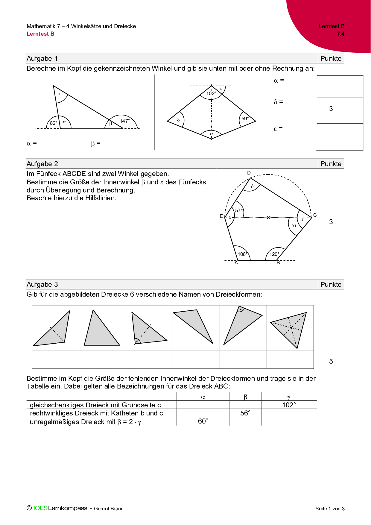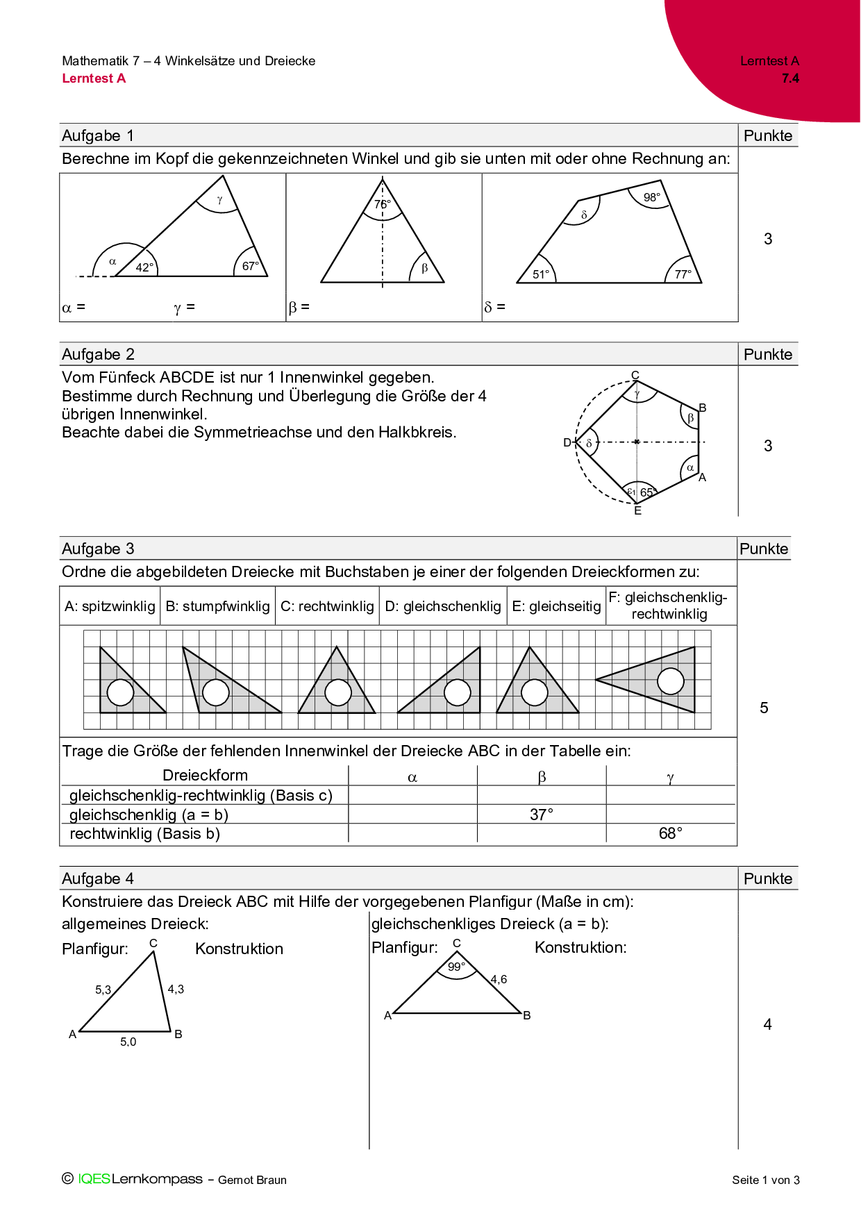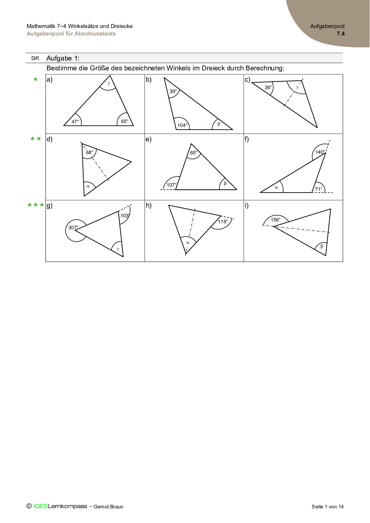7.4 Winkelsätze und Dreiecke – Aufgabenpool für Abschlusstests