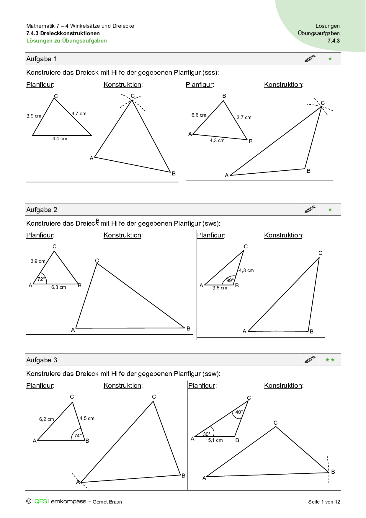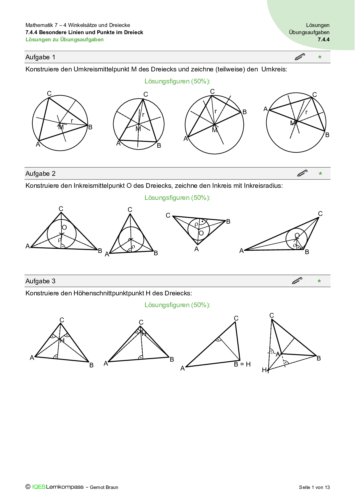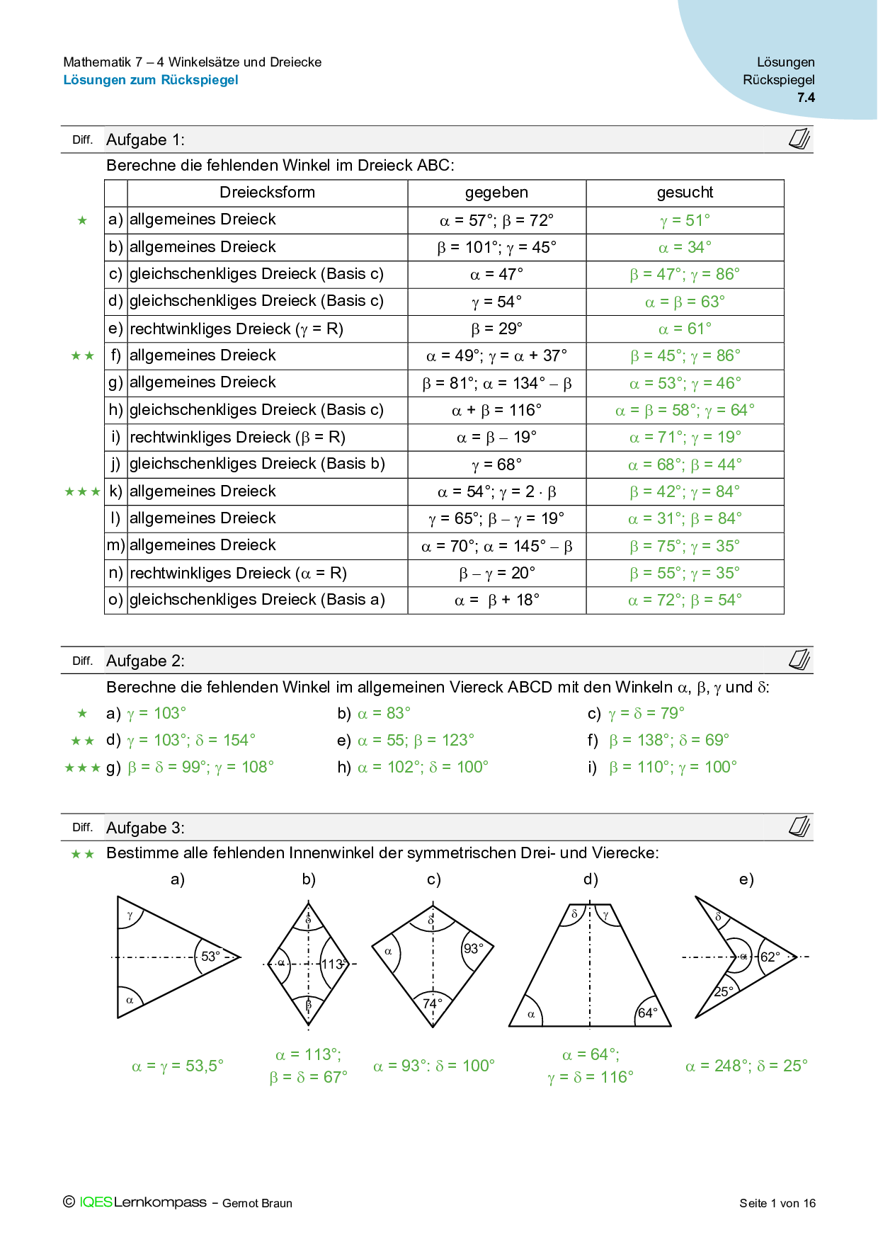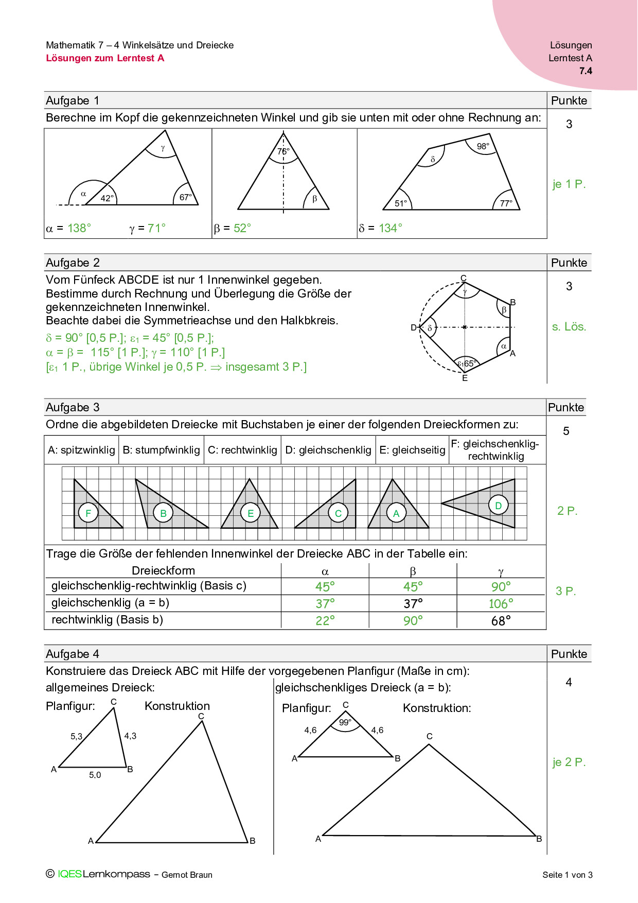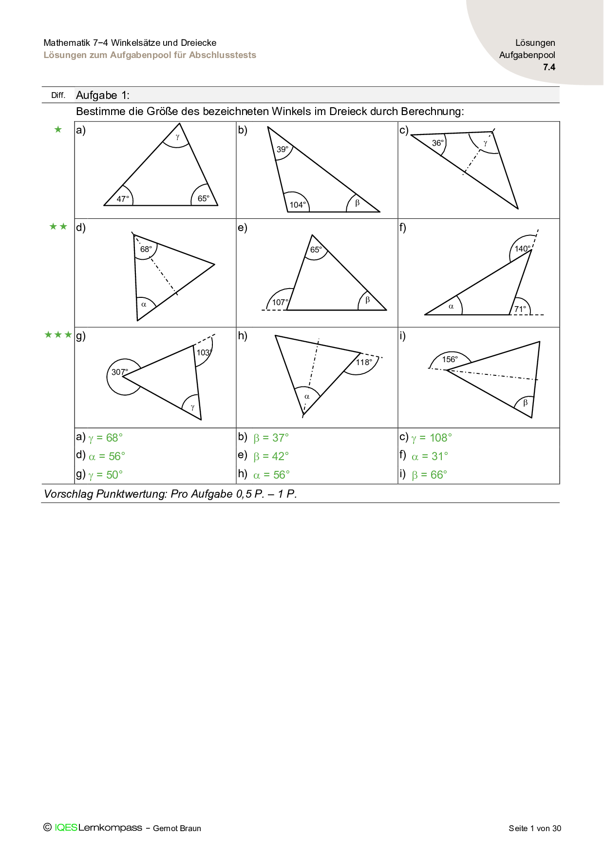 7.4 Winkelsätze und Dreiecke – Lösungen zum Aufgabenpool für Abschlusstests