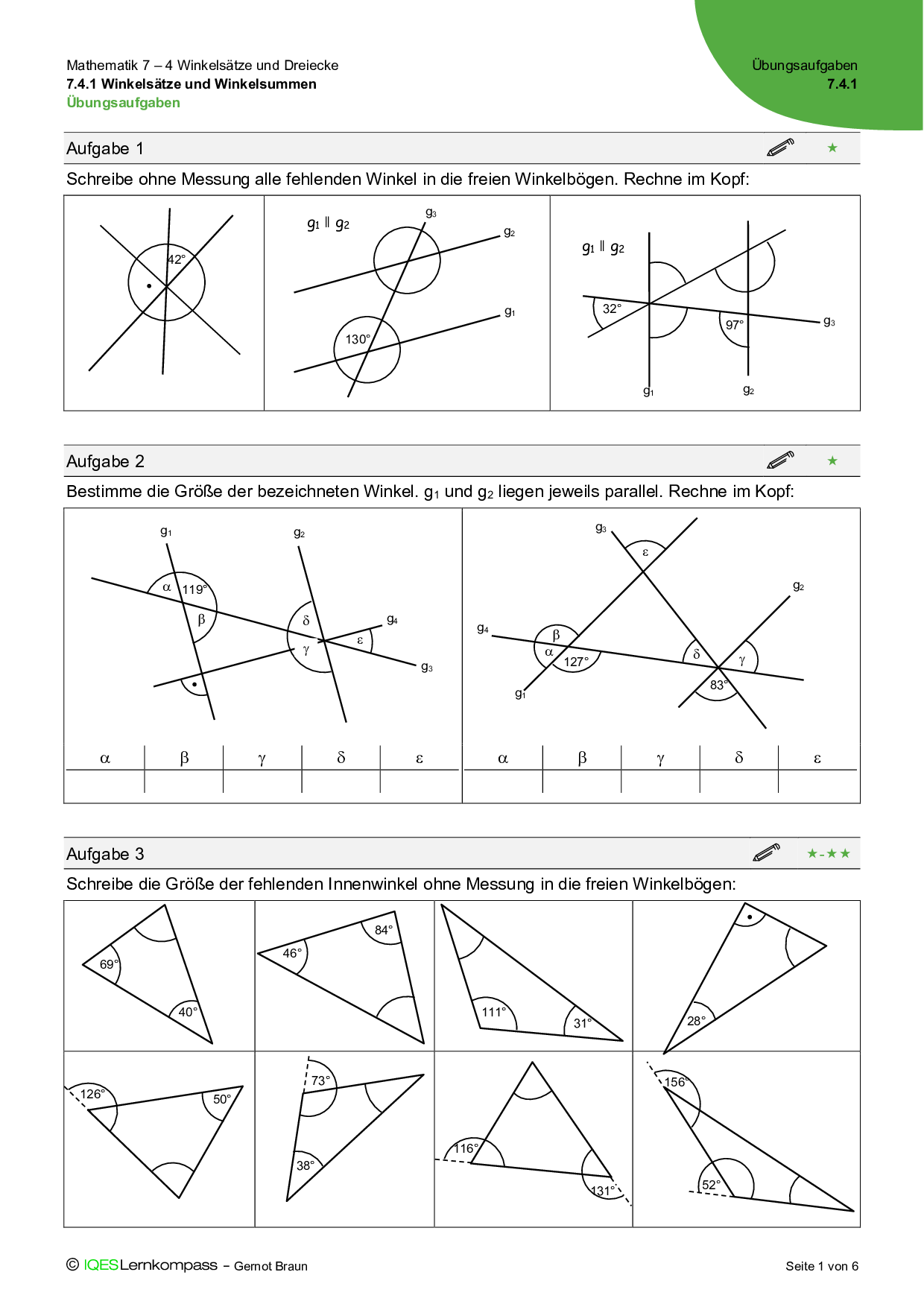 7.4 Winkelsätze und Dreiecke – Übersicht