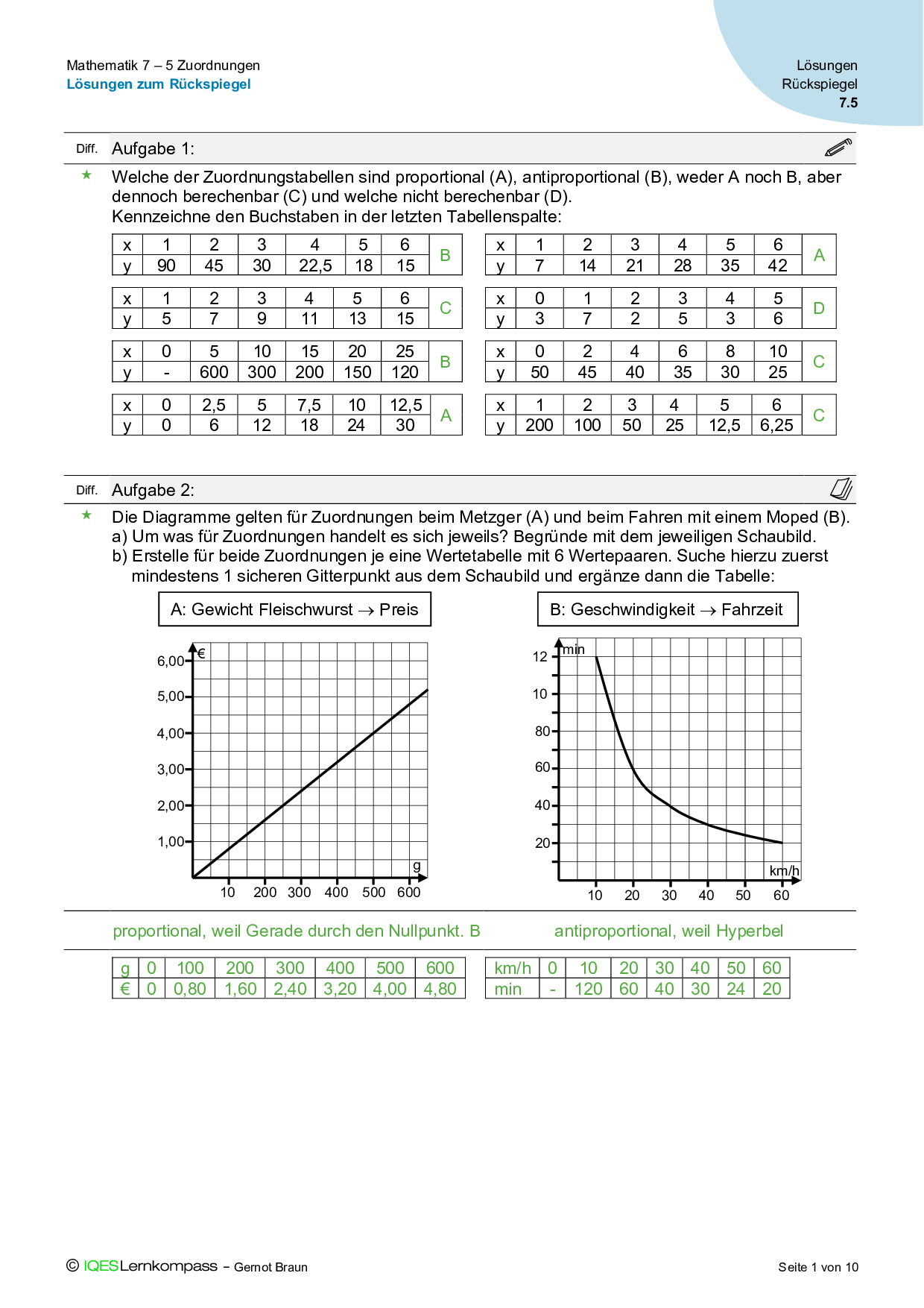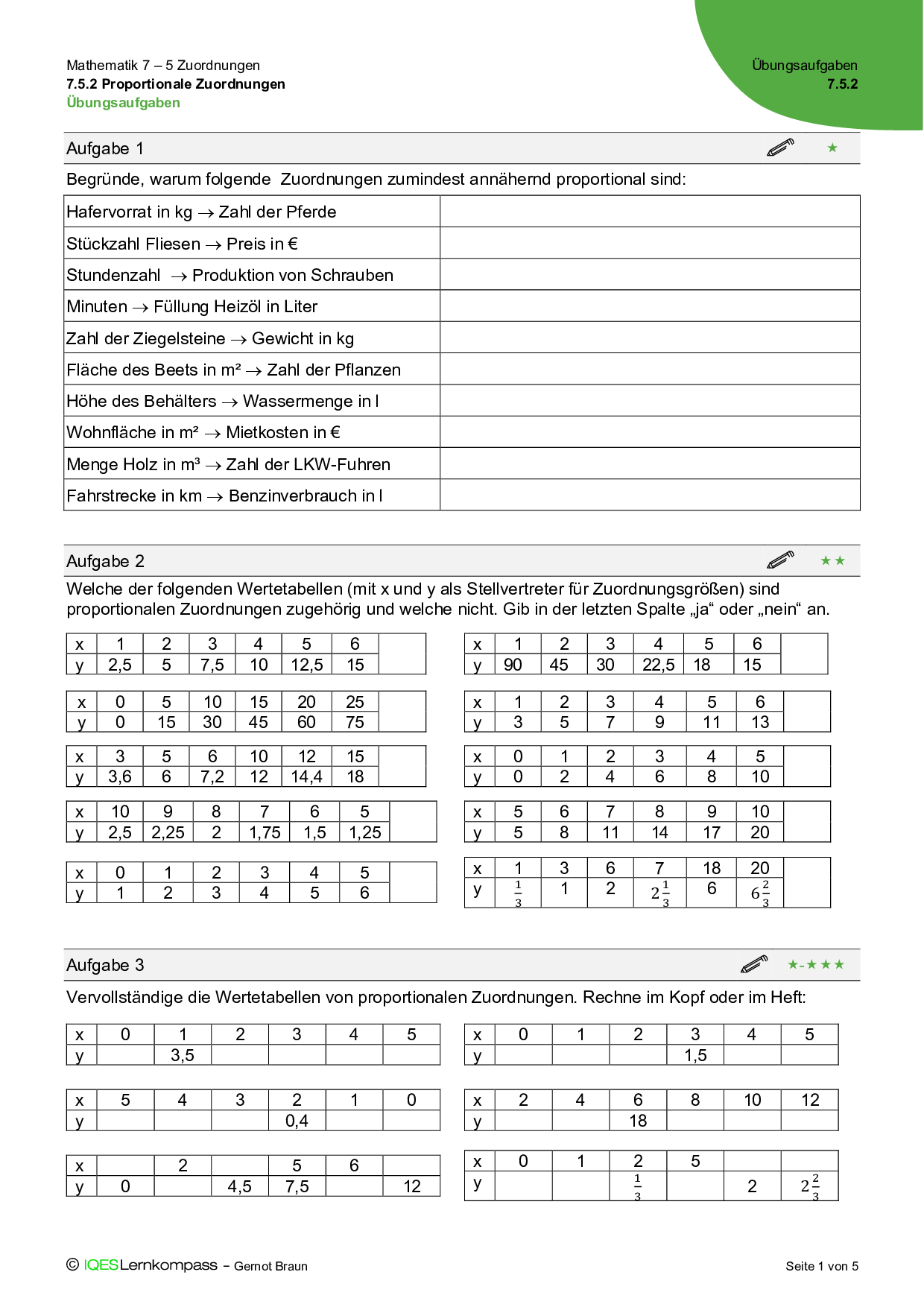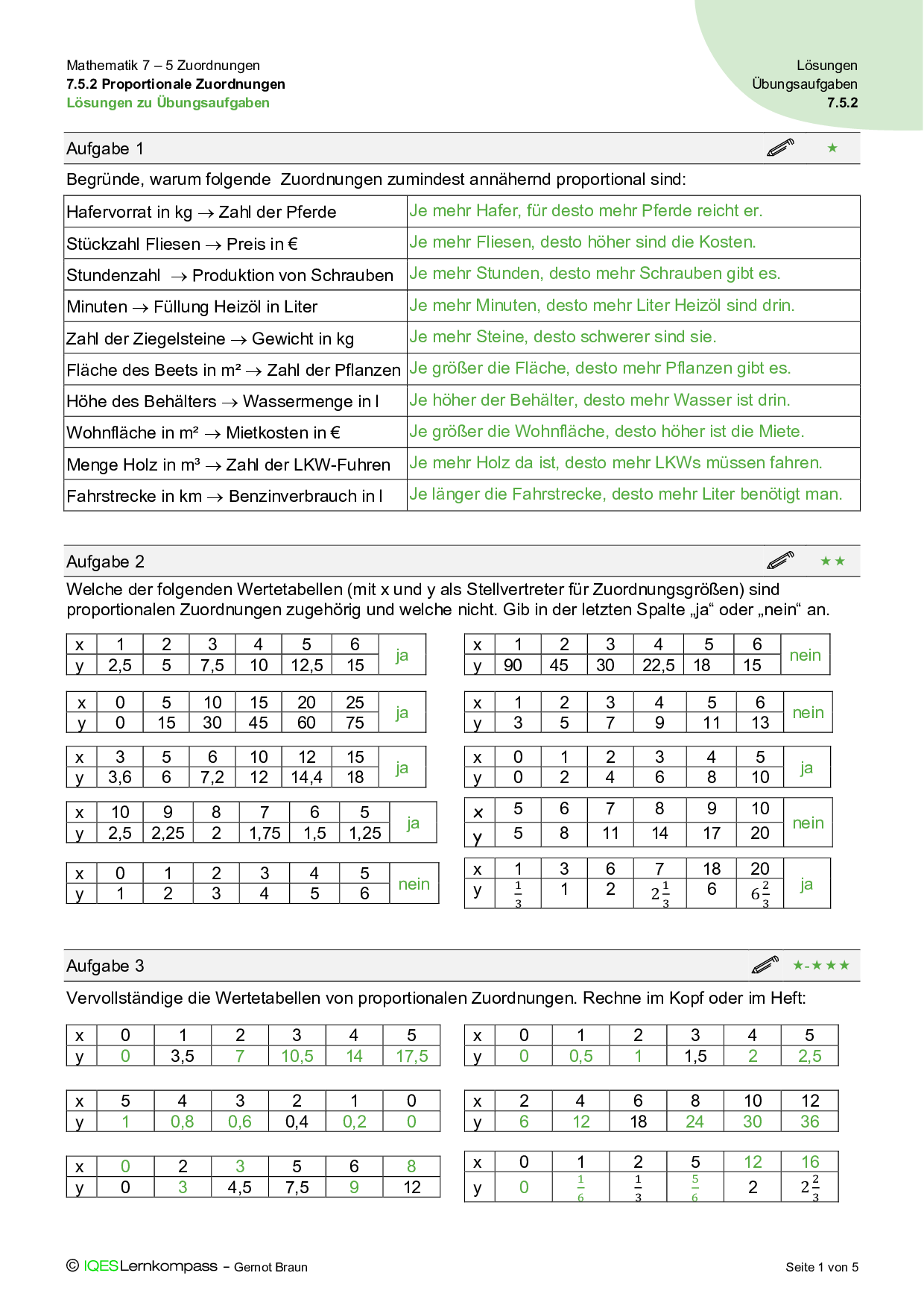 7.5.2 Proportionale Zuordnungen – Übungsaufgaben mit Lösungen