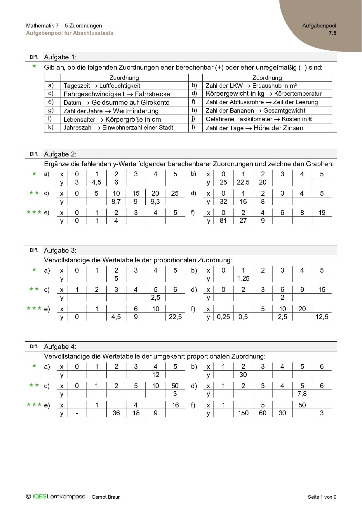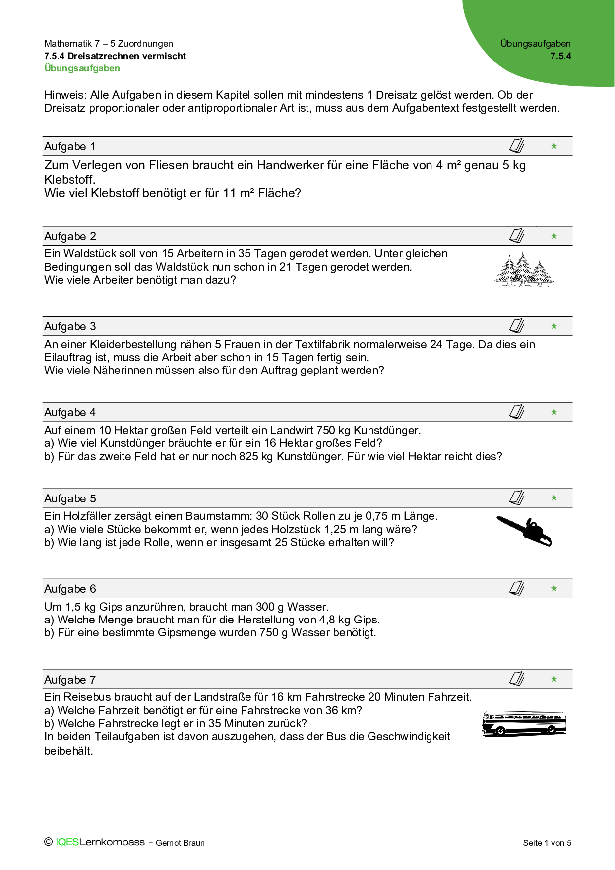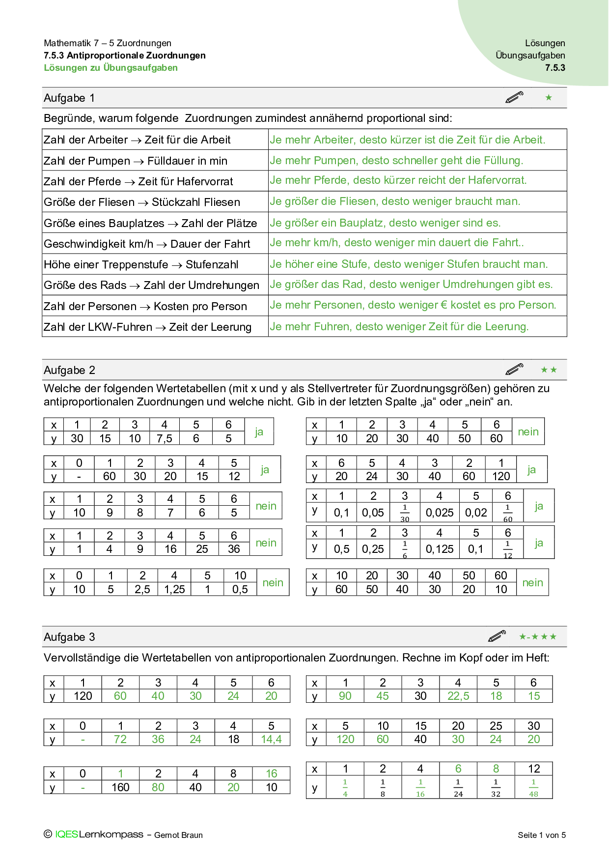 7.5.2 Proportionale Zuordnungen – Übungsaufgaben mit Lösungen