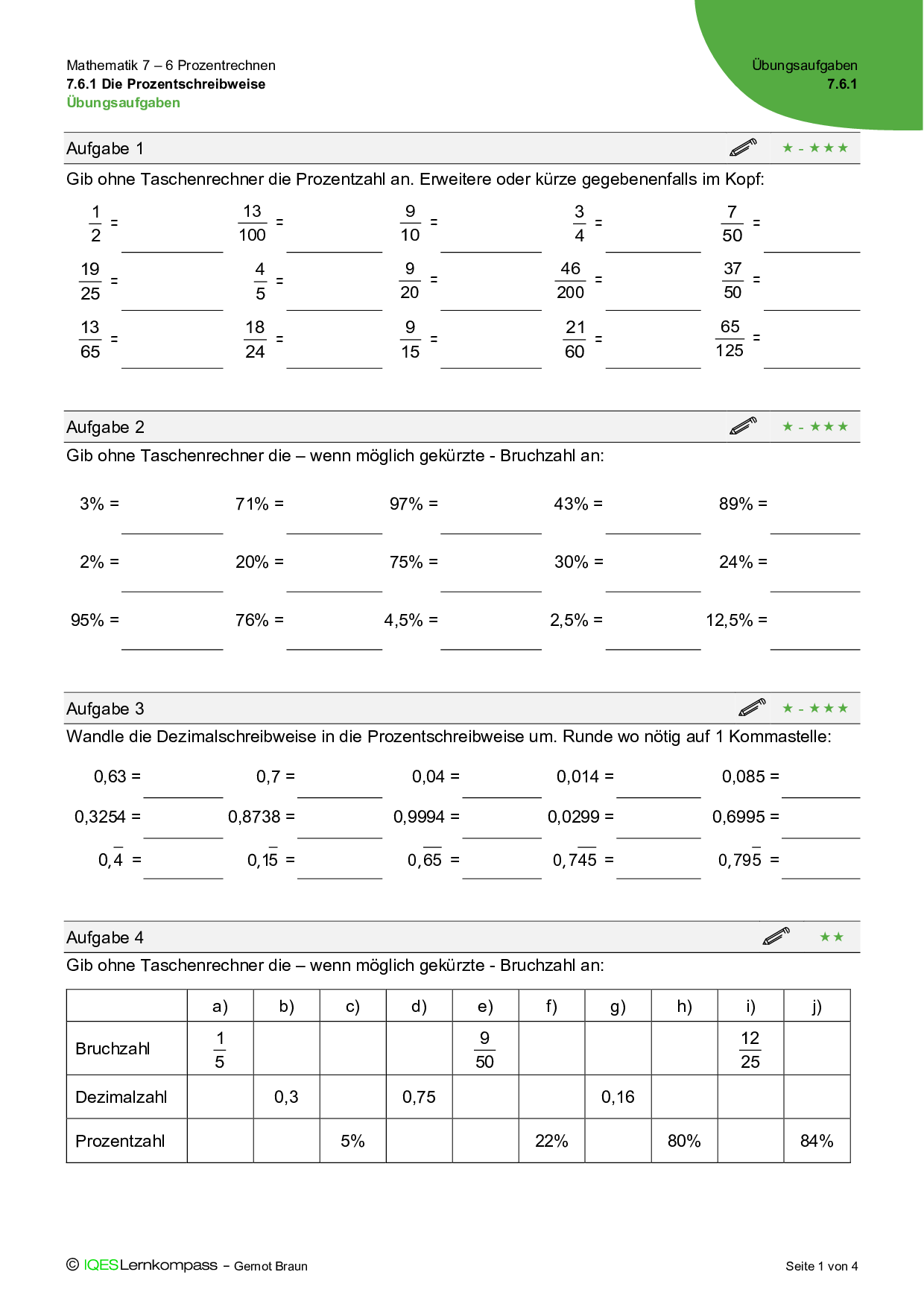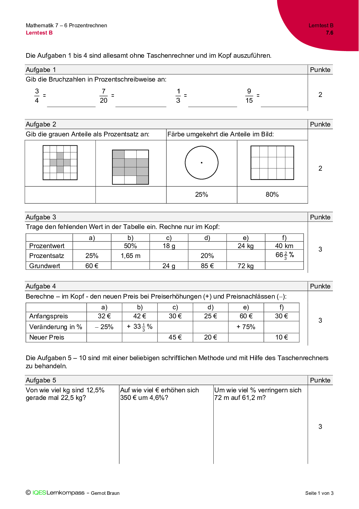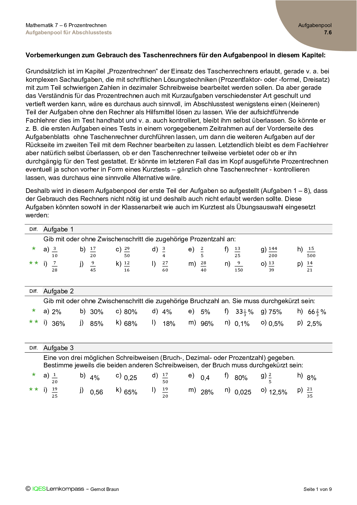 7.6 Prozentrechnen – Aufgabenpool für Abschlusstests