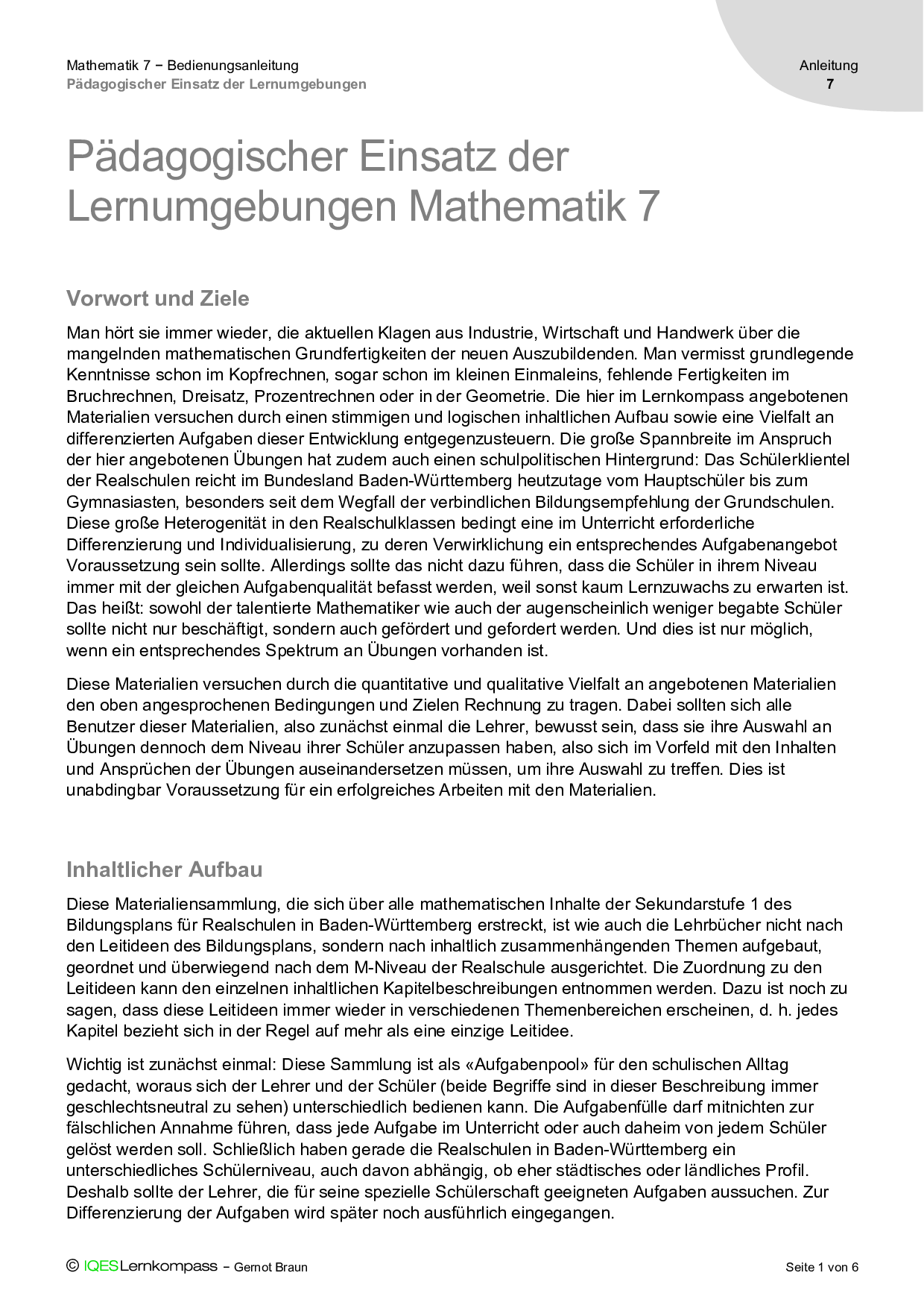 Die vorliegende Übersicht bietet Hinweise zum Aufbau und Einsatz der Unterrichtsreihe und der verschiedenen Inhalte. Ebenso finden sich hier die kompetenzorientierten Lernziele, welche mit den einzelnen Inhalten dieser Lernumgebung aufgebaut, gefördert und/oder vertieft werden können.