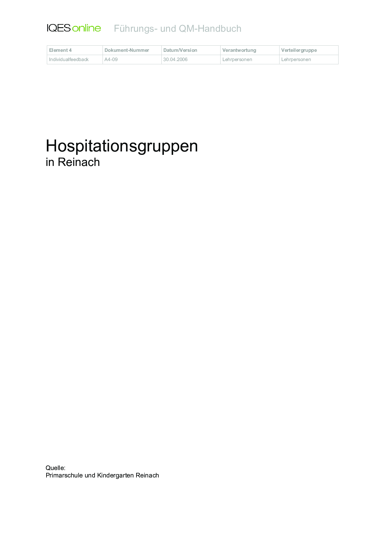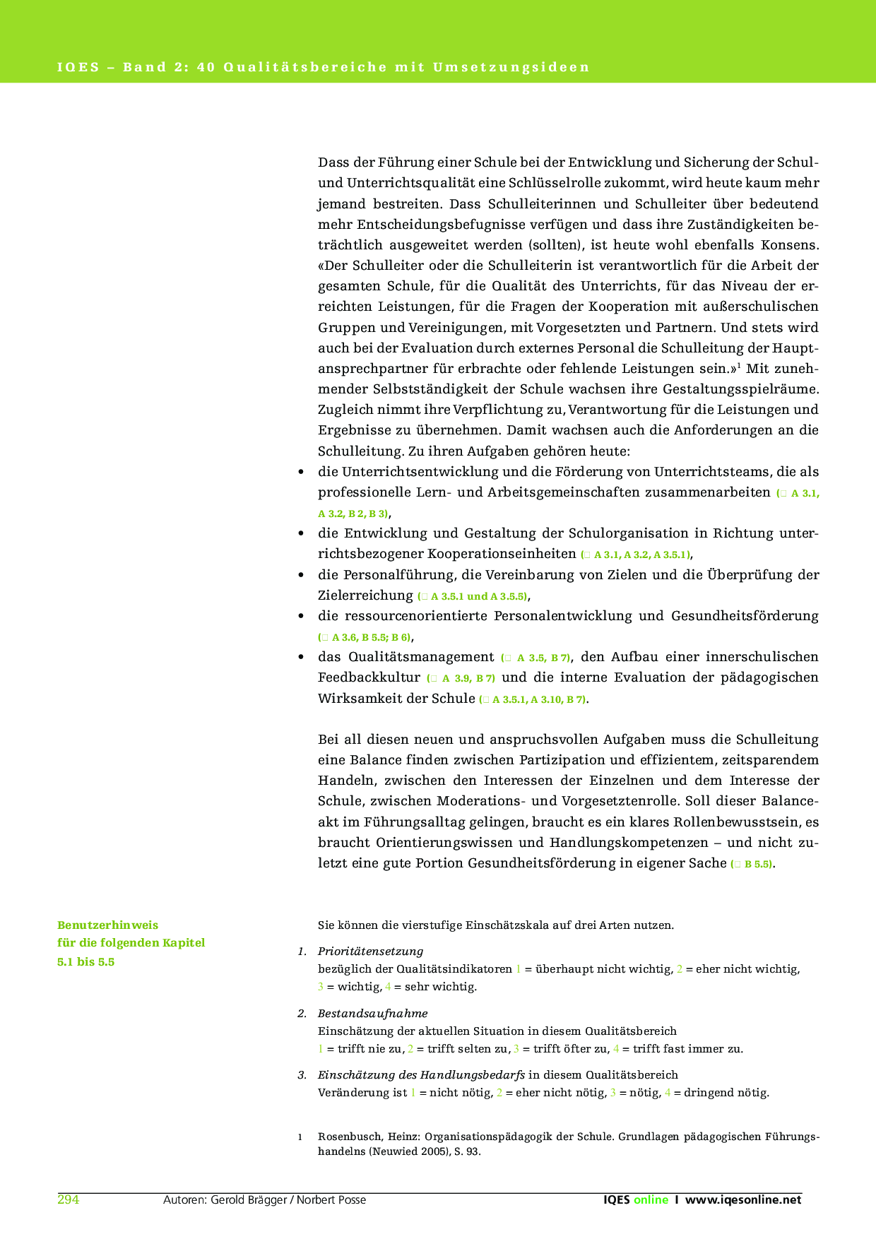 Herkunft: Gerold Brägger, Norbert Posse: Instrumente für die Qualitätsentwicklung und Evaluation in Schulen (IQES), Band 2. hep verlag, 2007. ISBN 9783039053483