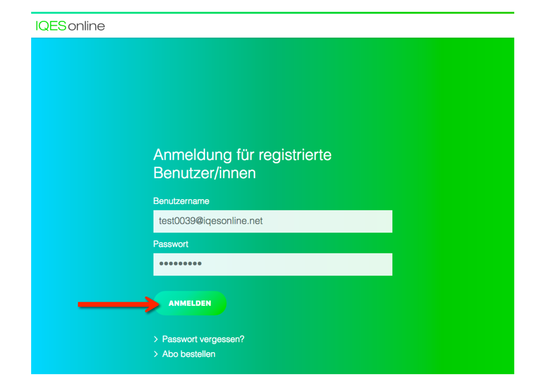 Klicken Sie auf der Anmeldeseite auf den Link: Passwort vergessen.