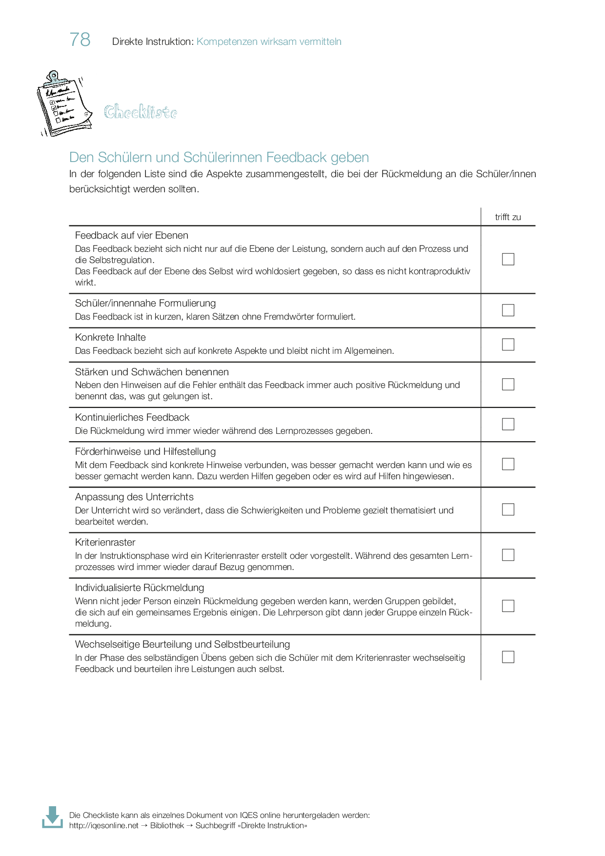Checkliste: Den Schülern und Schülerinnen Feedback geben