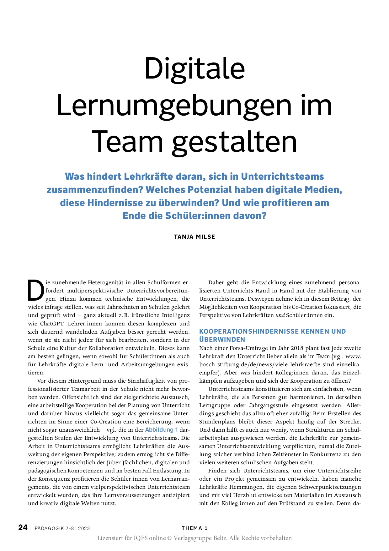 Herkunft: PÄDAGOGIK 7-8/24, Lizensiert für IQES online © Verlagsgruppe Beltz.