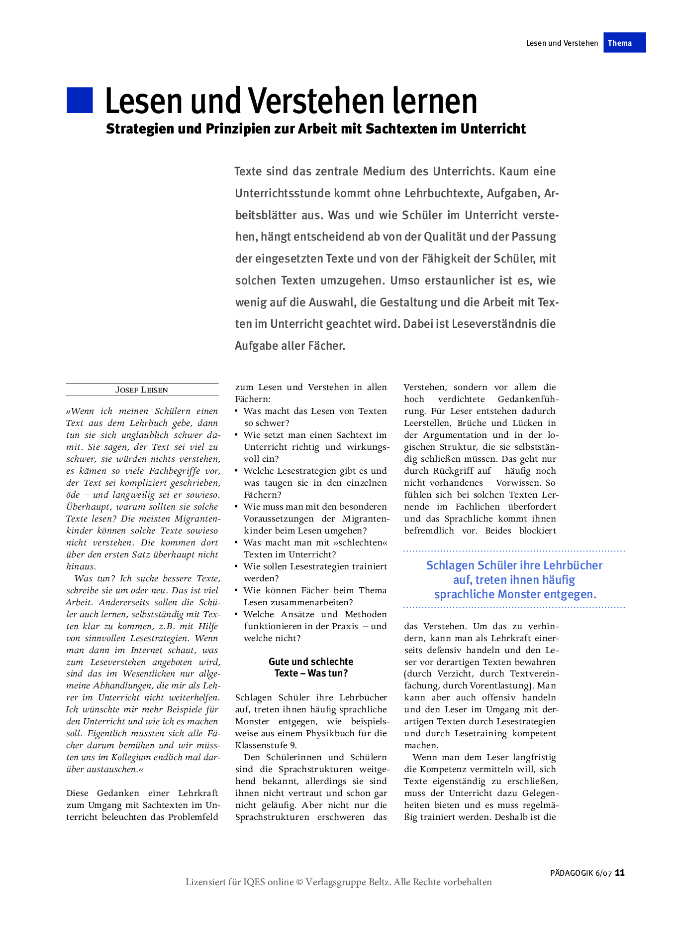 Herkunft: PÄDAGOGIK 6/07, lizensiert für IQES online © Verlagsgruppe Beltz