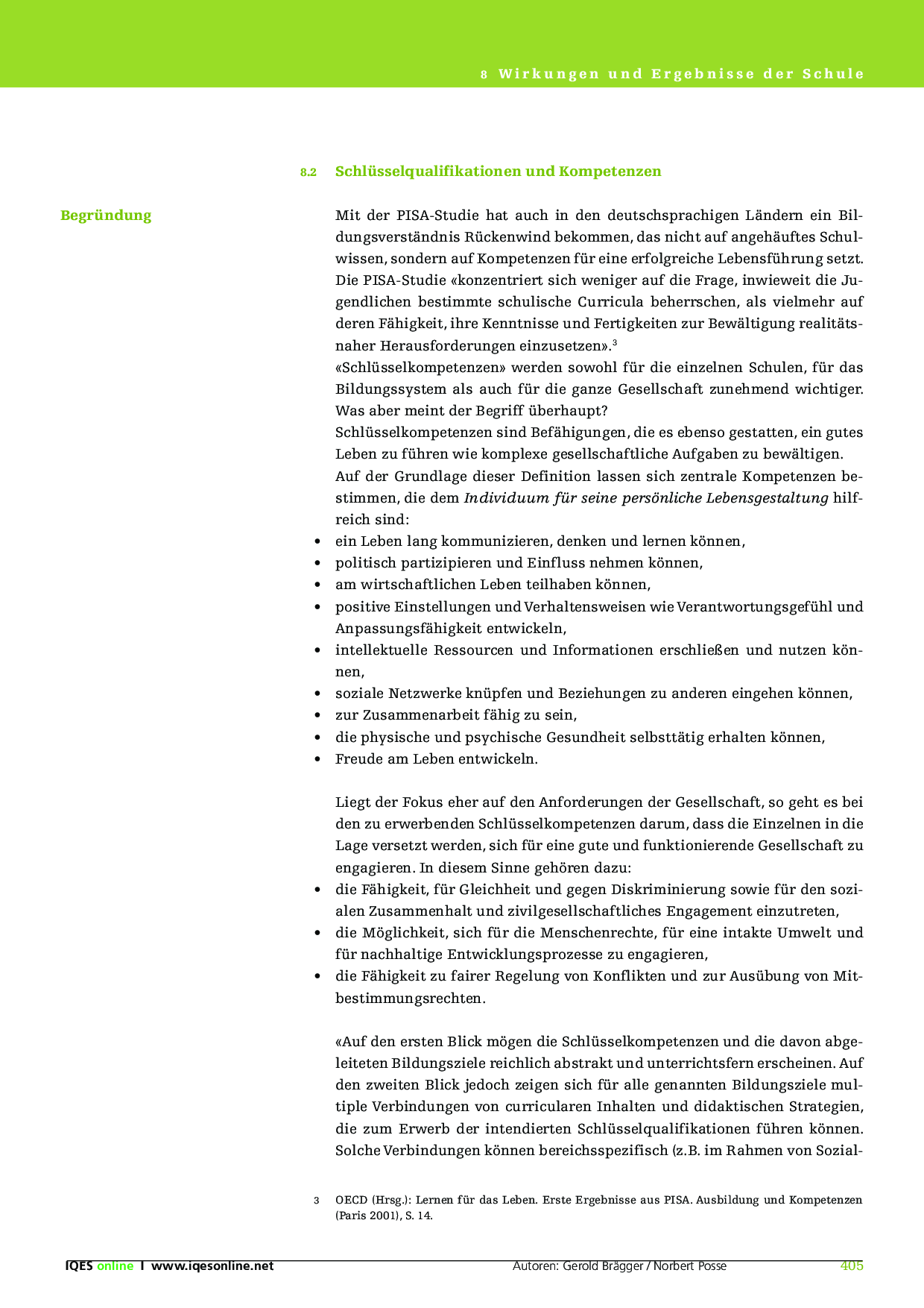 In diesem Auszug wird das Zusammenspiel von Schlüsselqualifikationen und Kompetenzen beschrieben. Es werden zudem die Schlüsselqualifikationen für ein erfolgreiches Leben und eine gut funktionierende Gesellschaft aufgezählt.