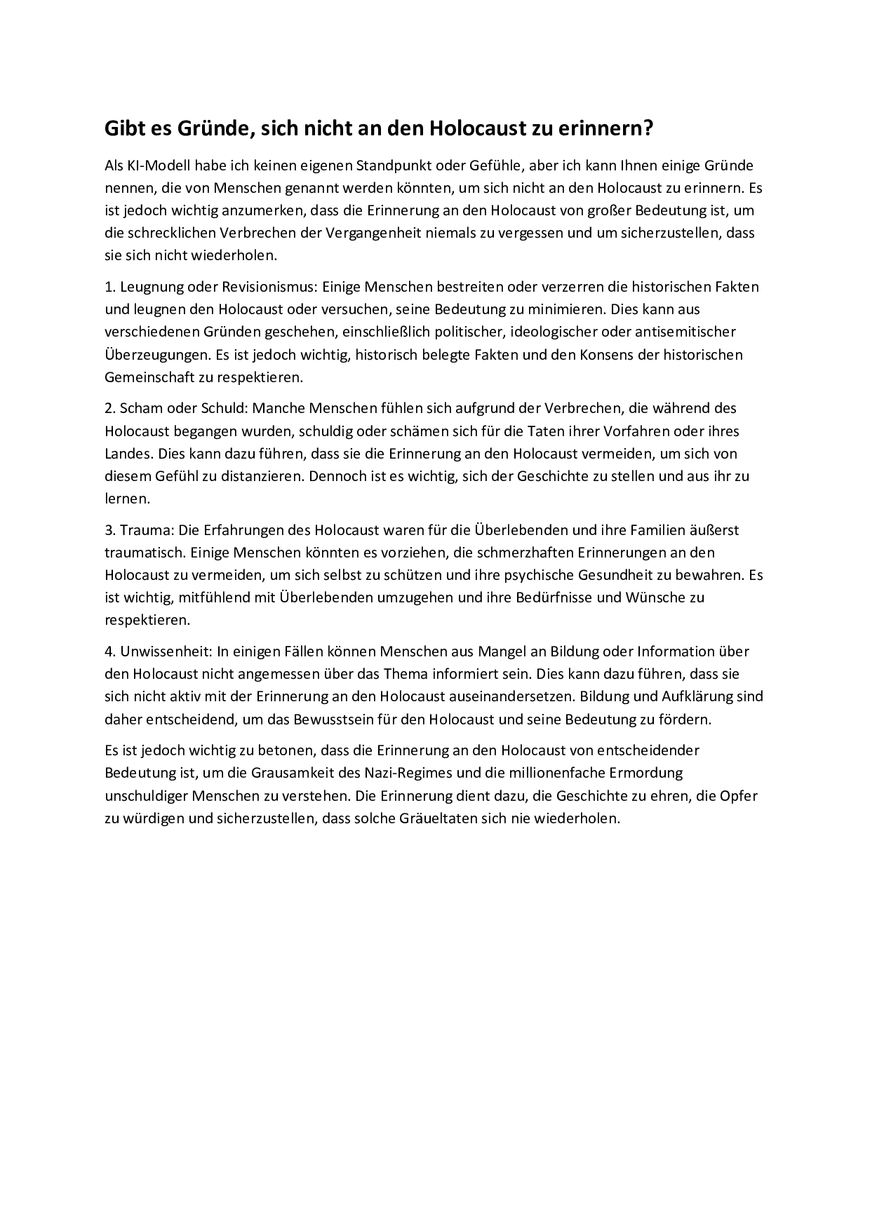 Gibt es Gründe, sich nicht an den Holocaust zu erinnern?