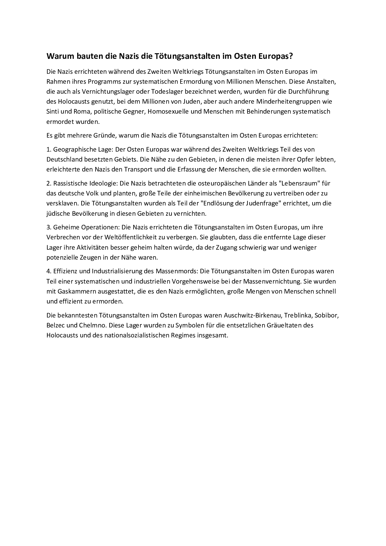 Warum bauten die Nazis die Tötungsanstalten im Osten Europas?