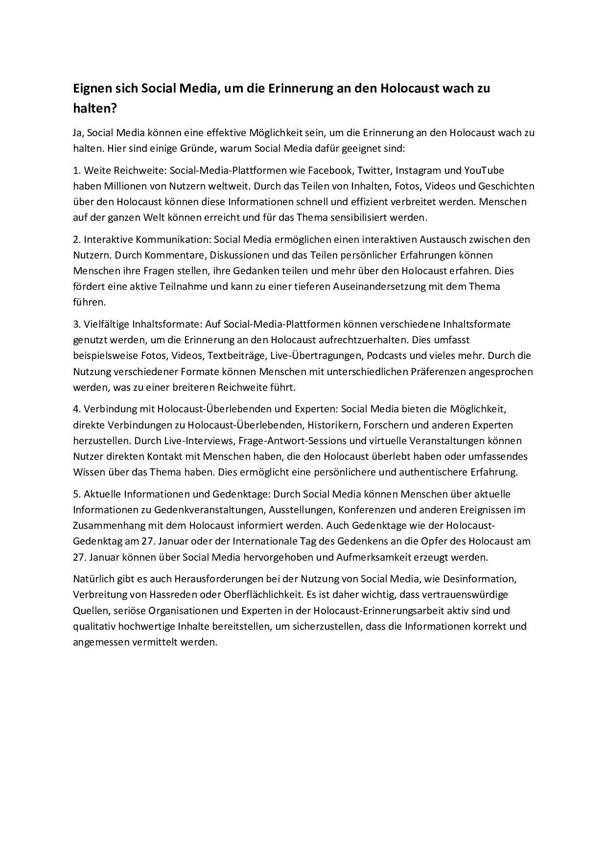 Eignen sich Social Media, um die Erinnerung an den Holocaust wach zu halten?