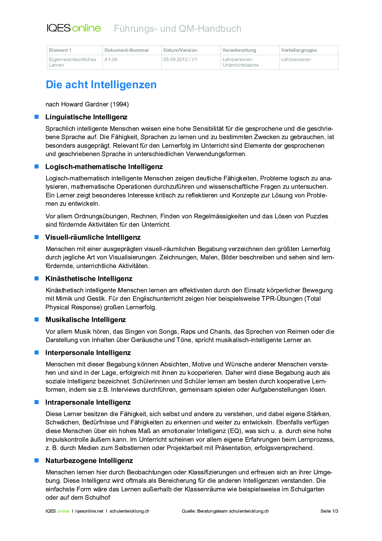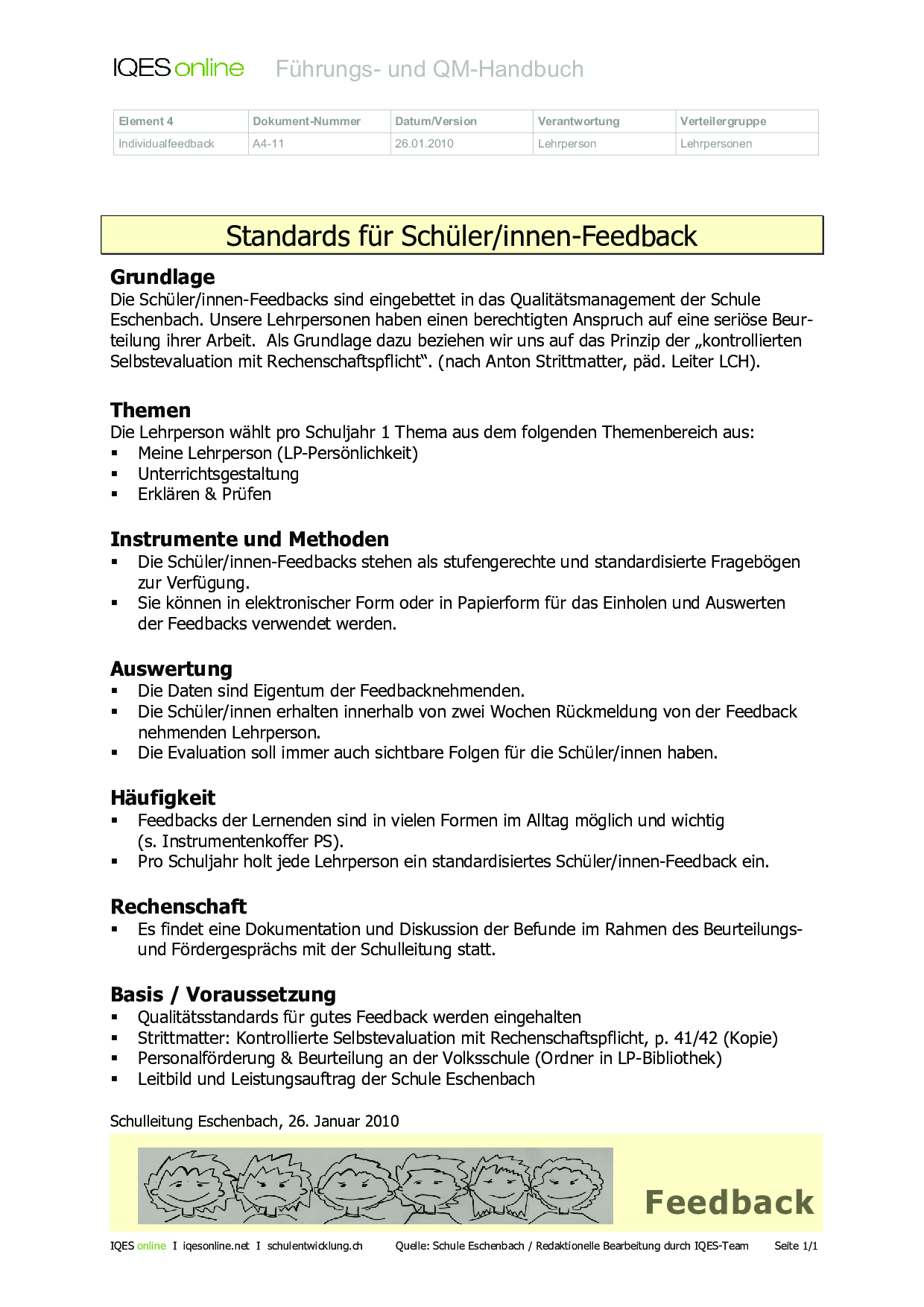 Herkunft: Gerold Brägger, Norbert Posse: Instrumente für die Qualitätsentwicklung und Evaluation in Schulen (IQES), Band 1. hep verlag, 2007. ISBN 9783039053483