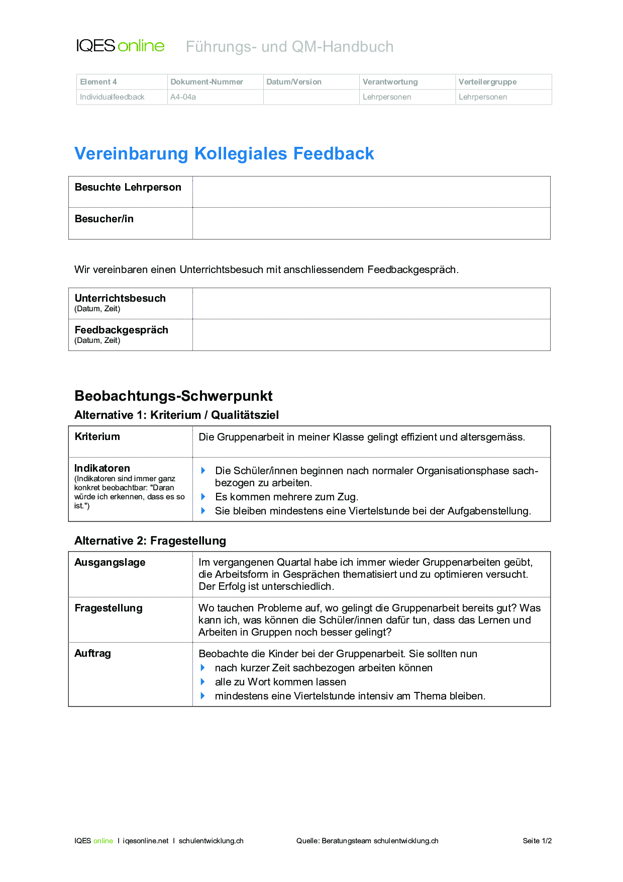 A4-04a Muster-Formular Vereinbarung Kollegialfeedback