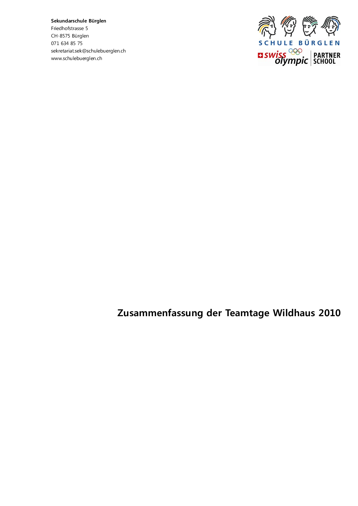 Die Früchte der Teamtage 2010 sind hier festgehalten. Der pädagogische Konsens an der Sekundarschule Bürglen steht dabei stark im Fokus.