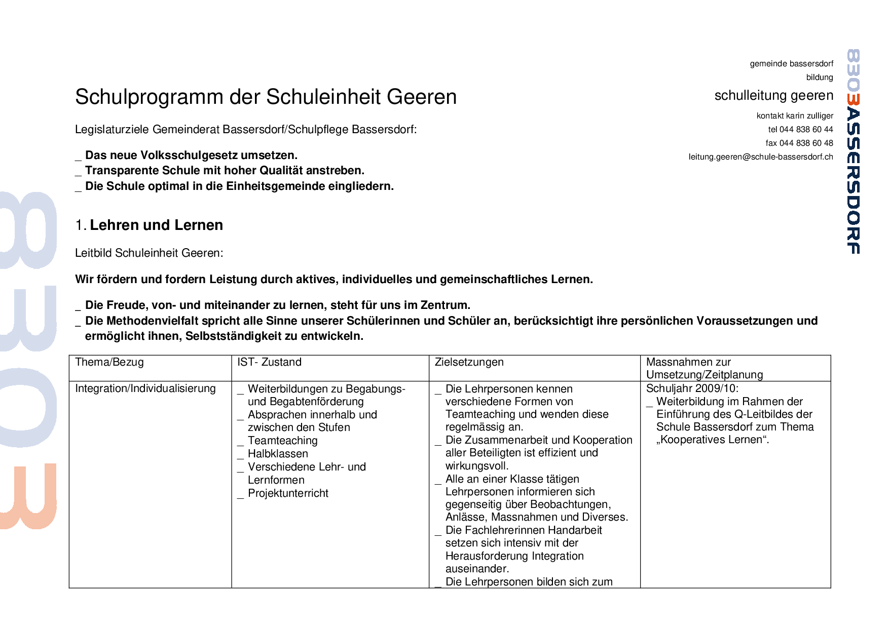 A7-09 Schulprogramm Schuleinheit Geeren, Bassersdorf