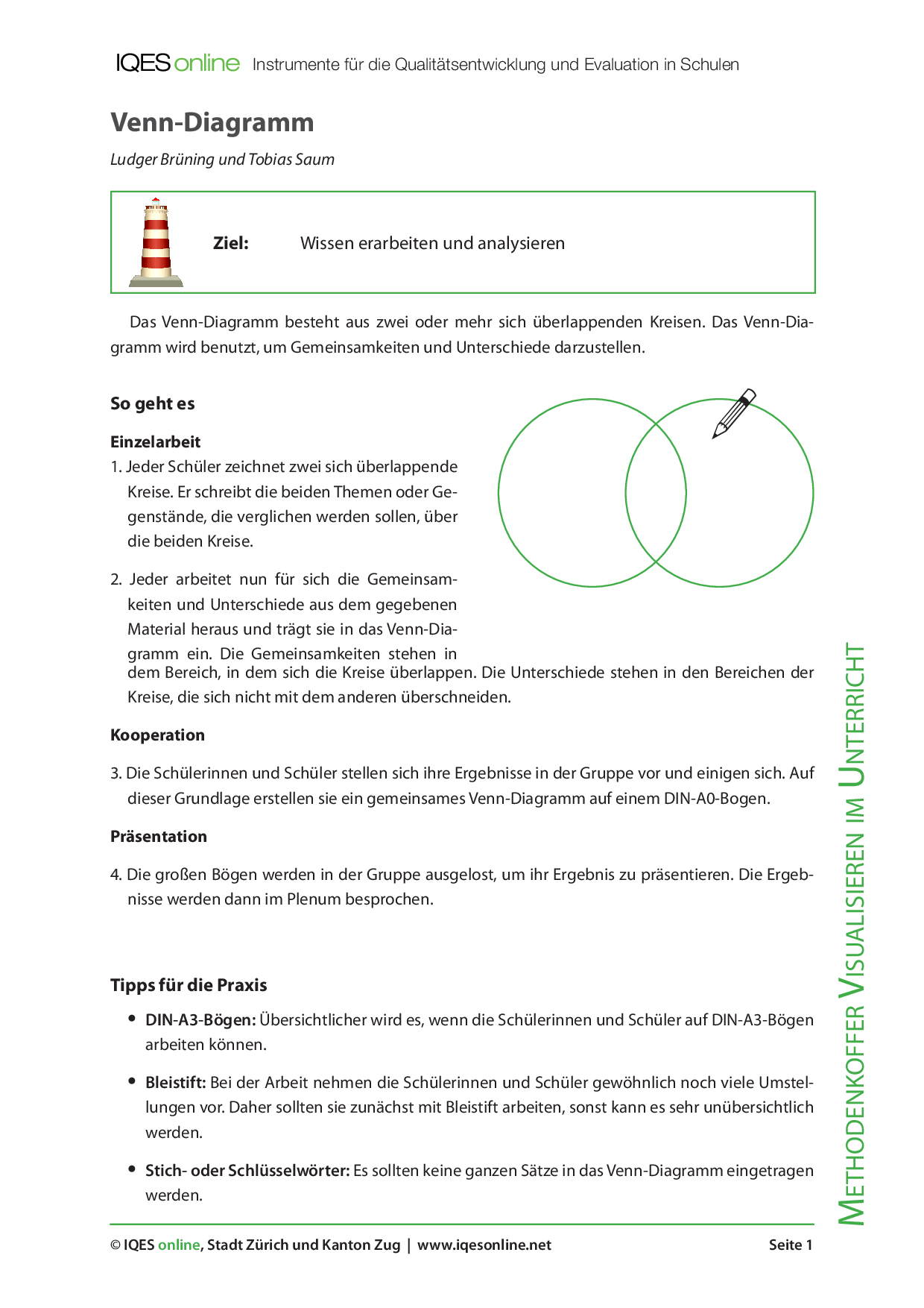 Das mathematische Venn-Diagramm, mit dem Gemeinsamkeiten und Unterschiede von verschiedenen Eigenschaften illustriert werden, lässt sich sehr gut als Kooperative Lernmethode für verschiedene Schülerstufen und Fächer verwenden. Eine Anleitung.