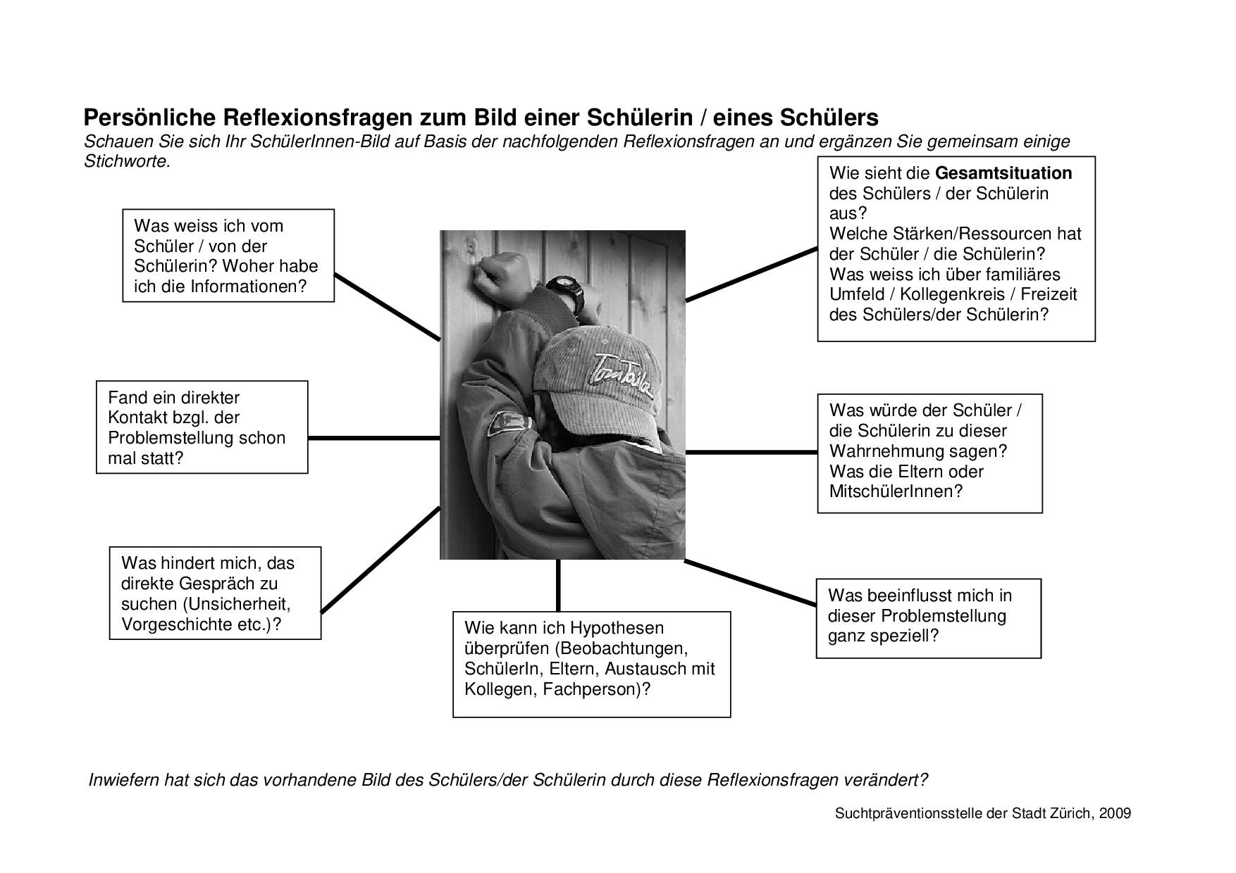 In diesem Dokument befinden sich einige Reflexionsfragen zu Schülerinnen und Schülern. Ziel davon ist es, das persönliche Bild spezifischer Schülerinnen und Schüler zu überdenken. Ausserdem wird damit geklärt, woher gewisse Annahmen und Vorurteile kommen.