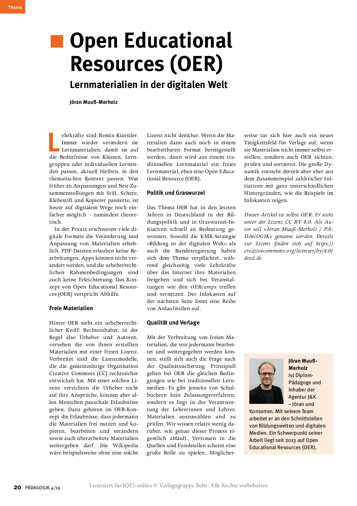Herkunft: PÄDAGOGIK 5/19, Lizensiert für IQES online © Verlagsgruppe Beltz