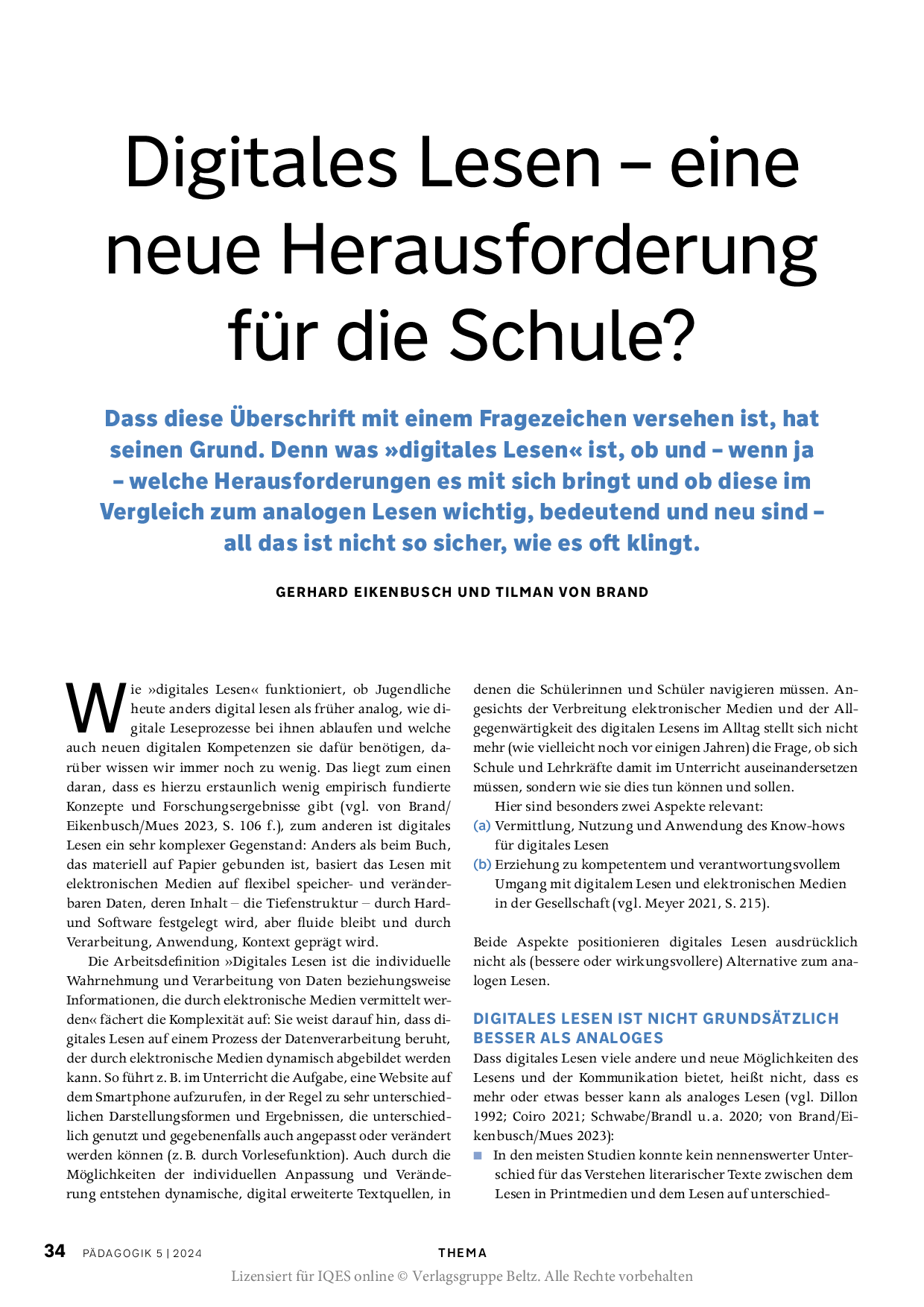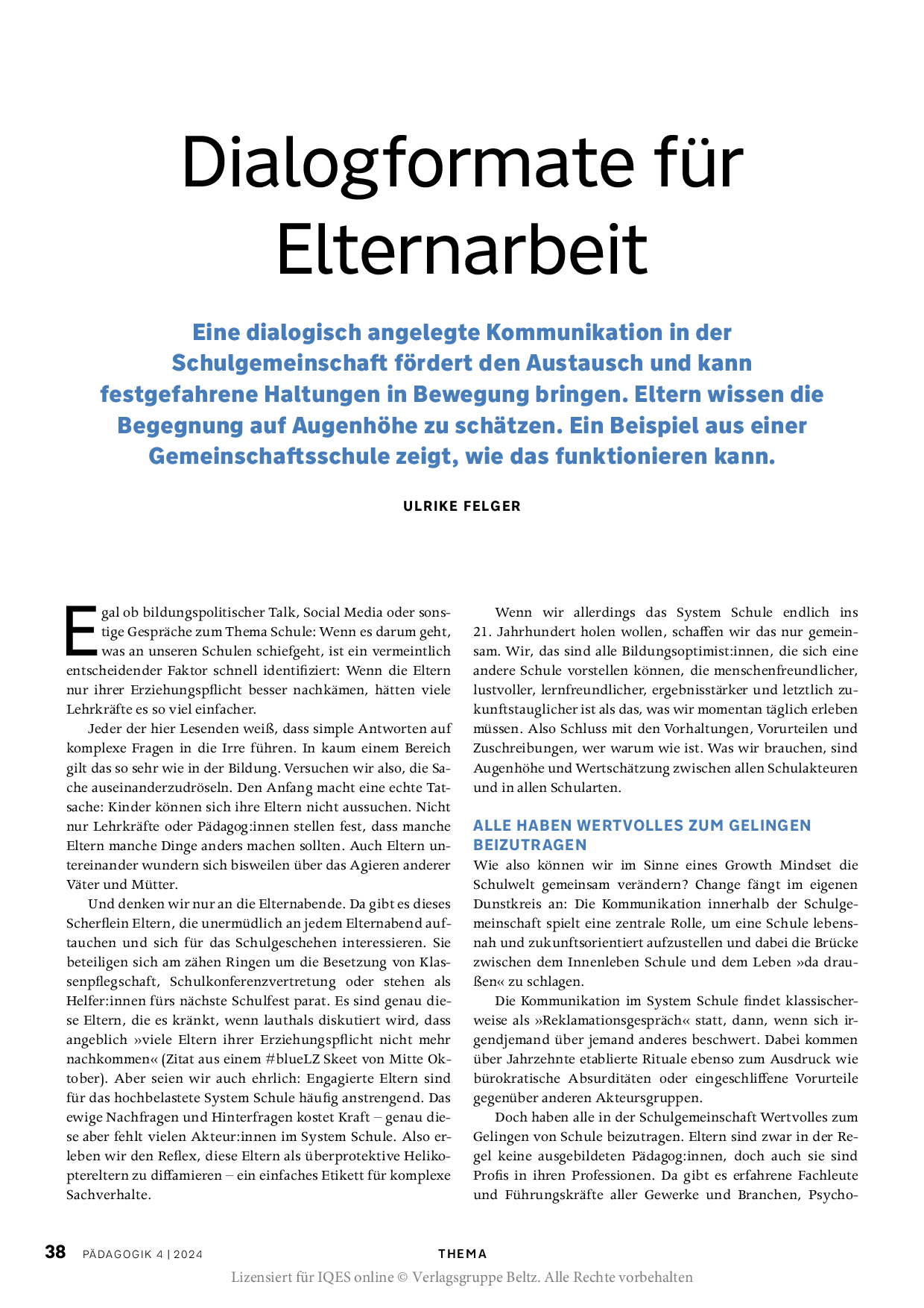 Herkunft: PÄDAGOGIK 4/24, Lizensiert für IQES online © Verlagsgruppe Beltz.