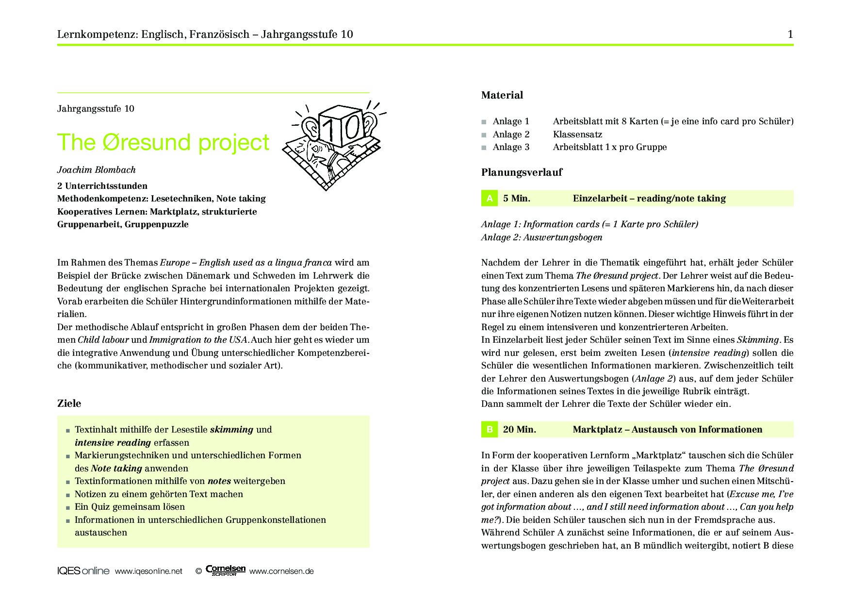 Im Rahmen des Themas Europe - English used as a lingua franca wird am Beispiel der Brücke zwischen Dänemark und Schweden im Lehrwerk die Bedeutung der englischen Sprache bei internationalen Projekten gezeigt. Vorab erarbeiten die Schüler Hintergrundinformationen mithilfe der Materialien. Die Unterrichtseinheit richtet sich an die 10. Stufe und umfasst 2 Lektionen.