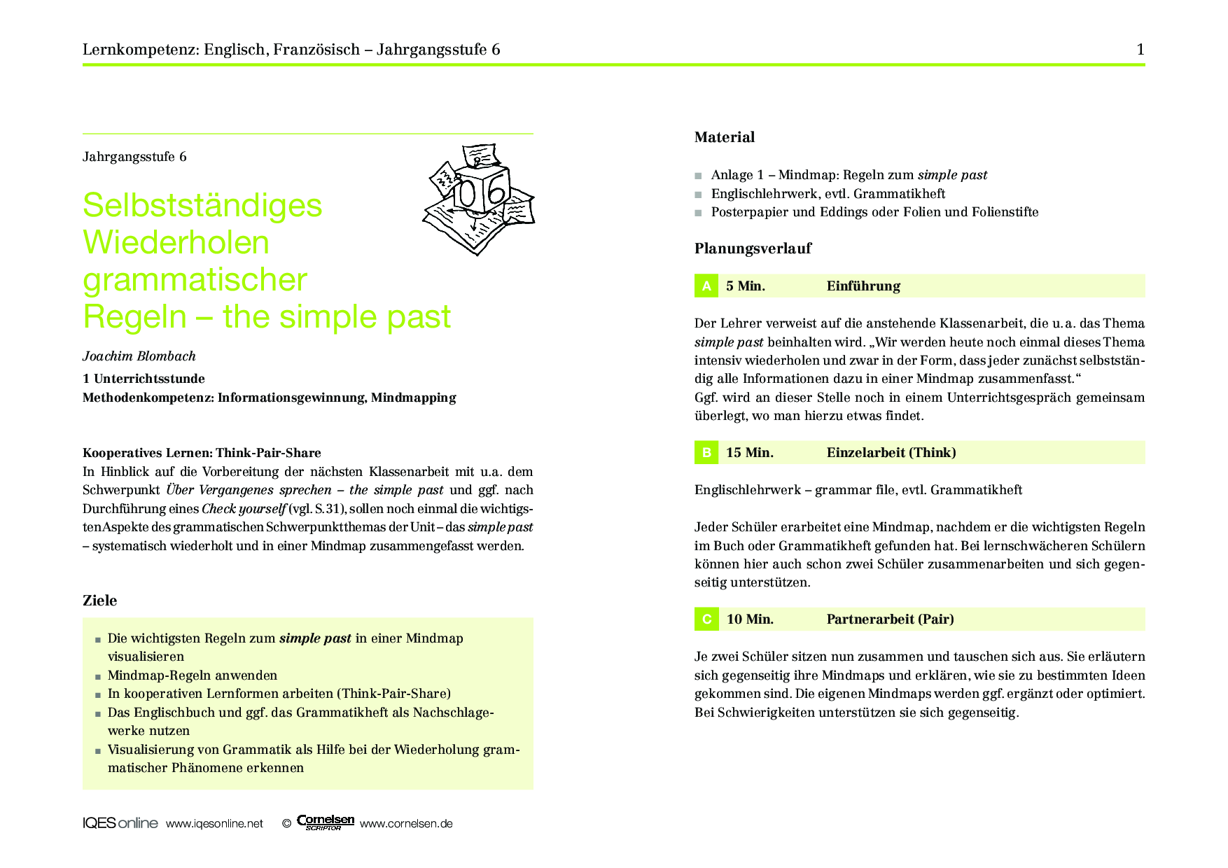 Im folgenden Unterrichtsarrangement für die 6. Klasse erarbeiten die Schülerinnen und Schüler Regeln zur Bildung des simple past. Die vorherige Wiederholung des simple present ist sinnvoll. Es sind Arbeitsblätter vorhanden.