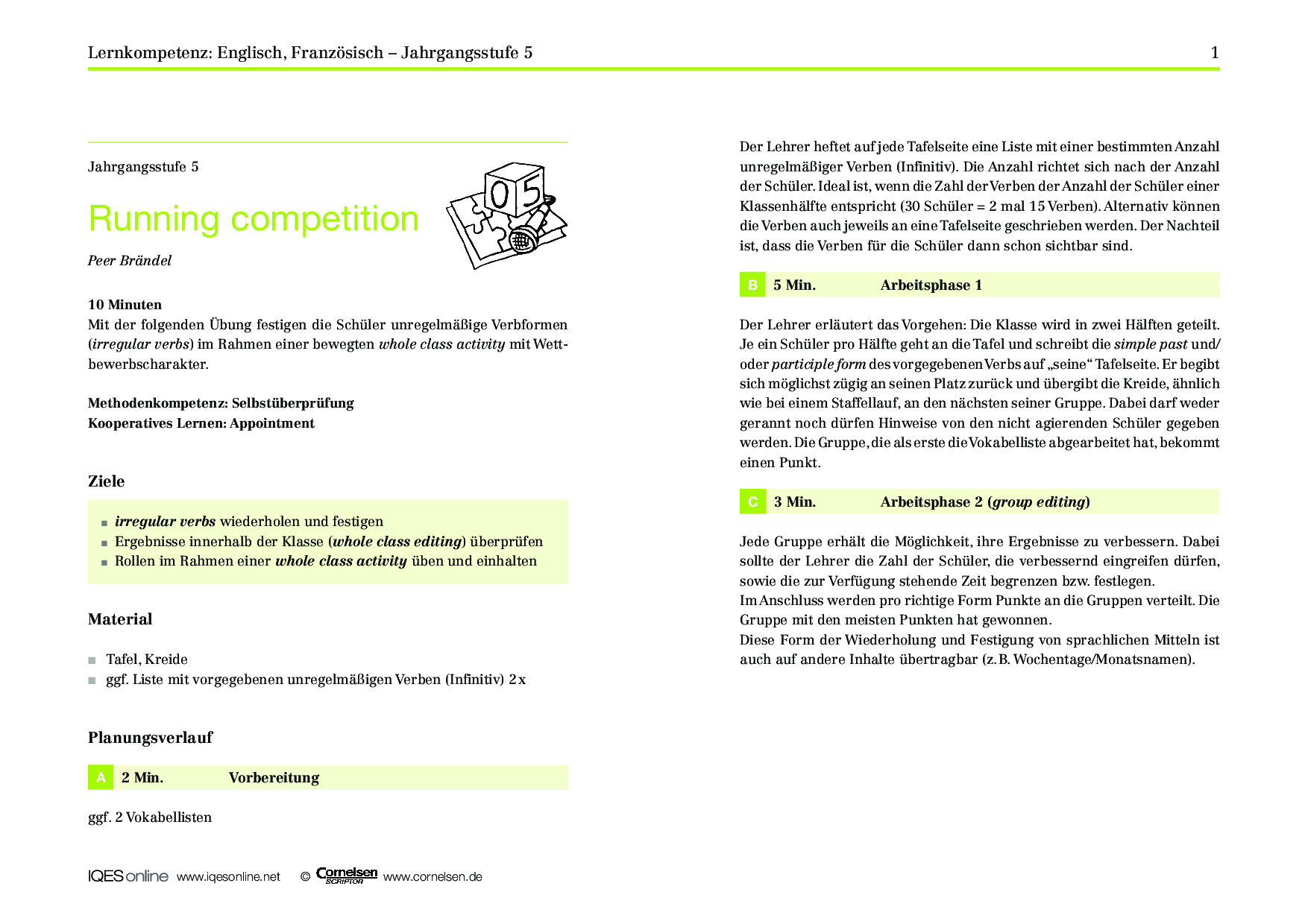 Mit der hier beschriebenen Übung festigen die Schülerinnen und Schüler im Englischunterricht die unregelmässigen Verbformen (irregular verbs). Dies geschieht im Rahmen einer bewegten whole class activity mit Wettbewerbscharakter.