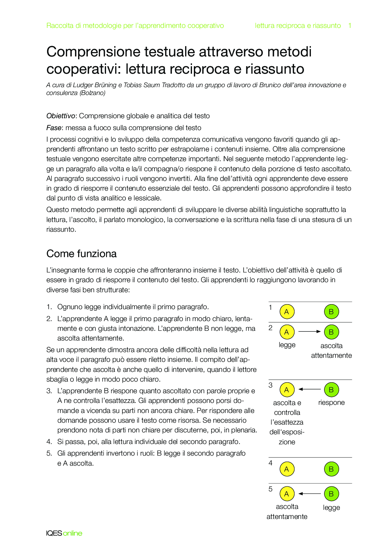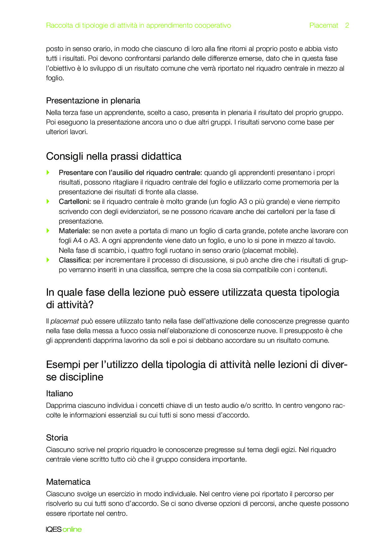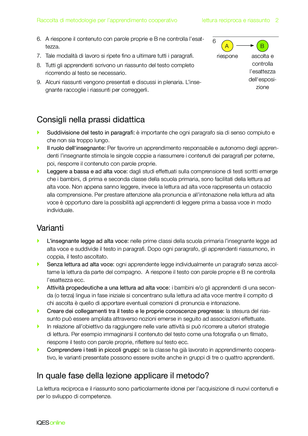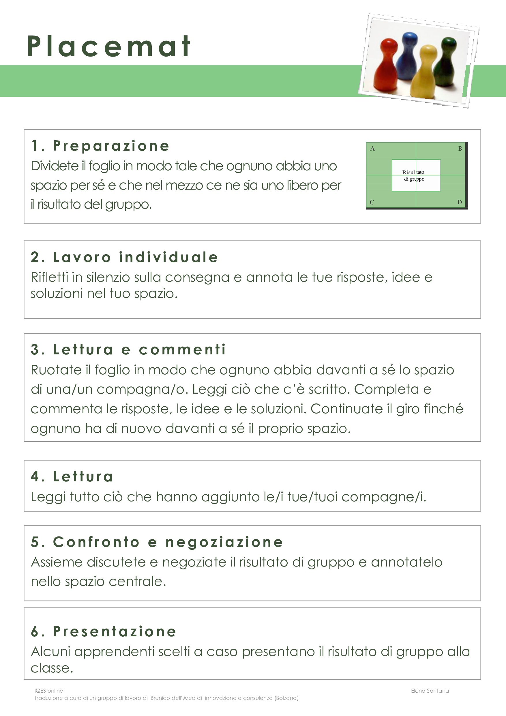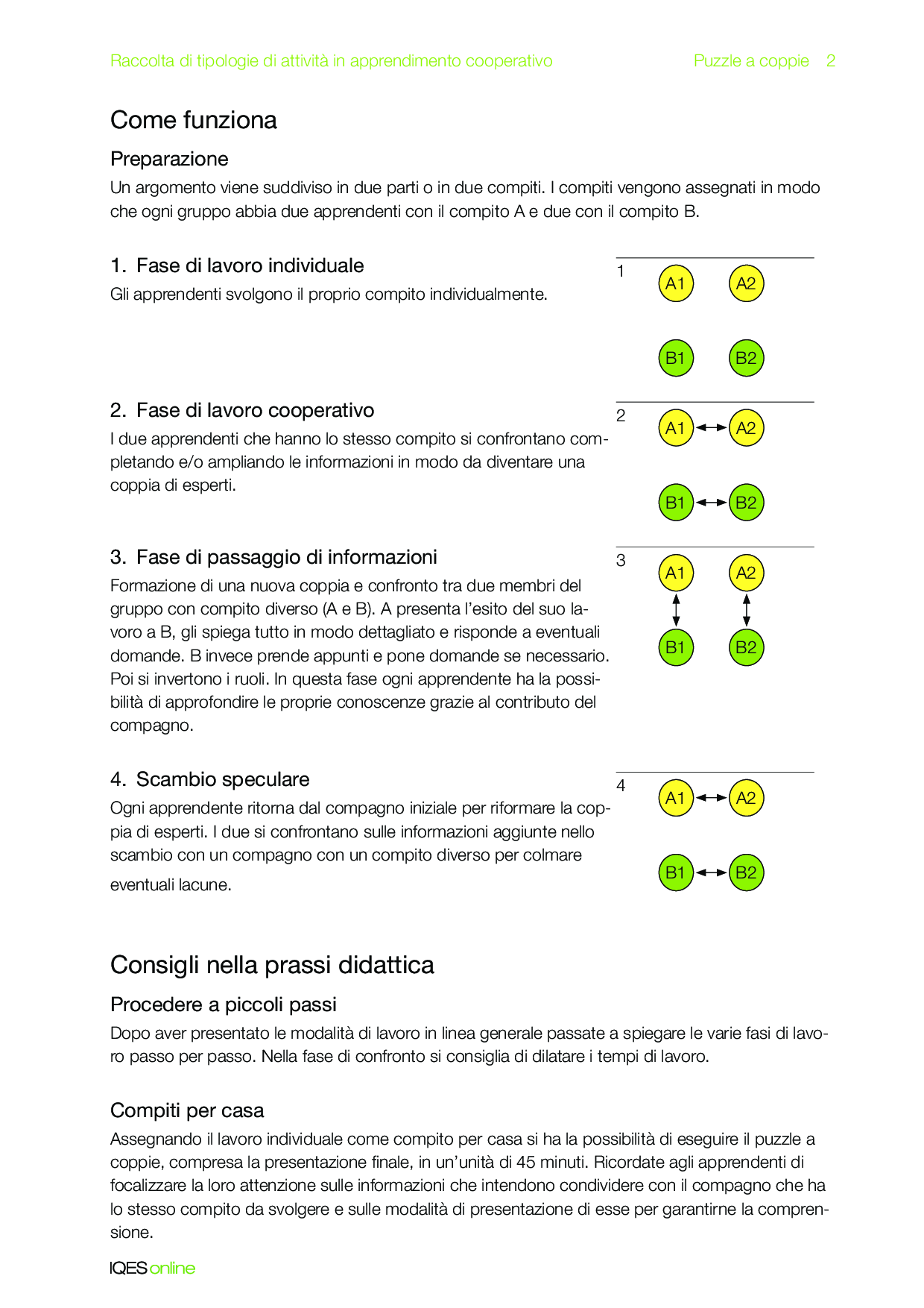 Raccolta di tipologie di attivitä in apprendimento cooperativo - Traduzione a cura di un gruppo di lavoro dell’Area di innovazione e consulenza (Bolzano): Claudia Amato, Paola Cason, Marina Fiorentini, Manuela Guzzetti, Oriana Primucci, Monika Schwingshackl, Raffaele Vaccarin