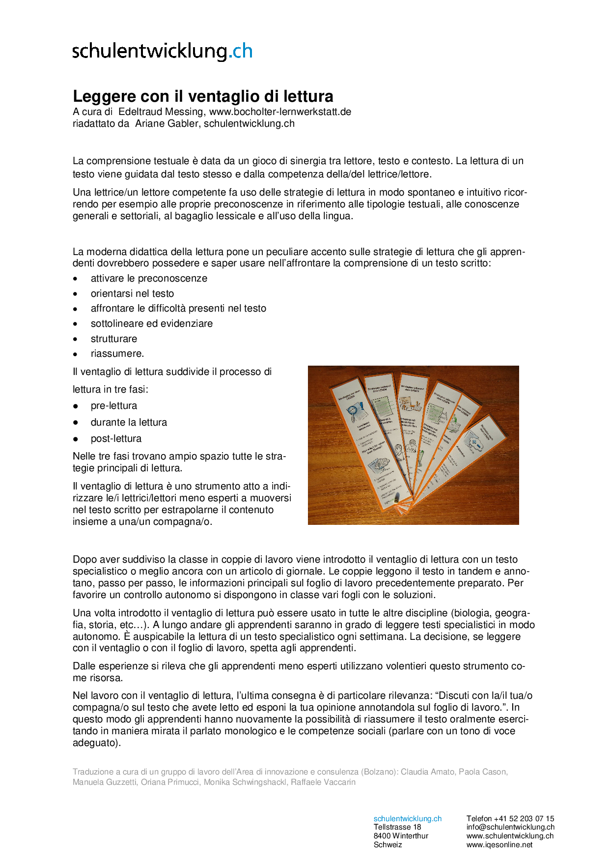 Traduzione a cura di un gruppo di lavoro dell’Area di innovazione e consulenza (Bolzano): Claudia Amato, Paola Cason, Marina Fiorentini, Manuela Guzzetti, Oriana Primucci, Monika Schwingshackl, Raffaele Vaccarin